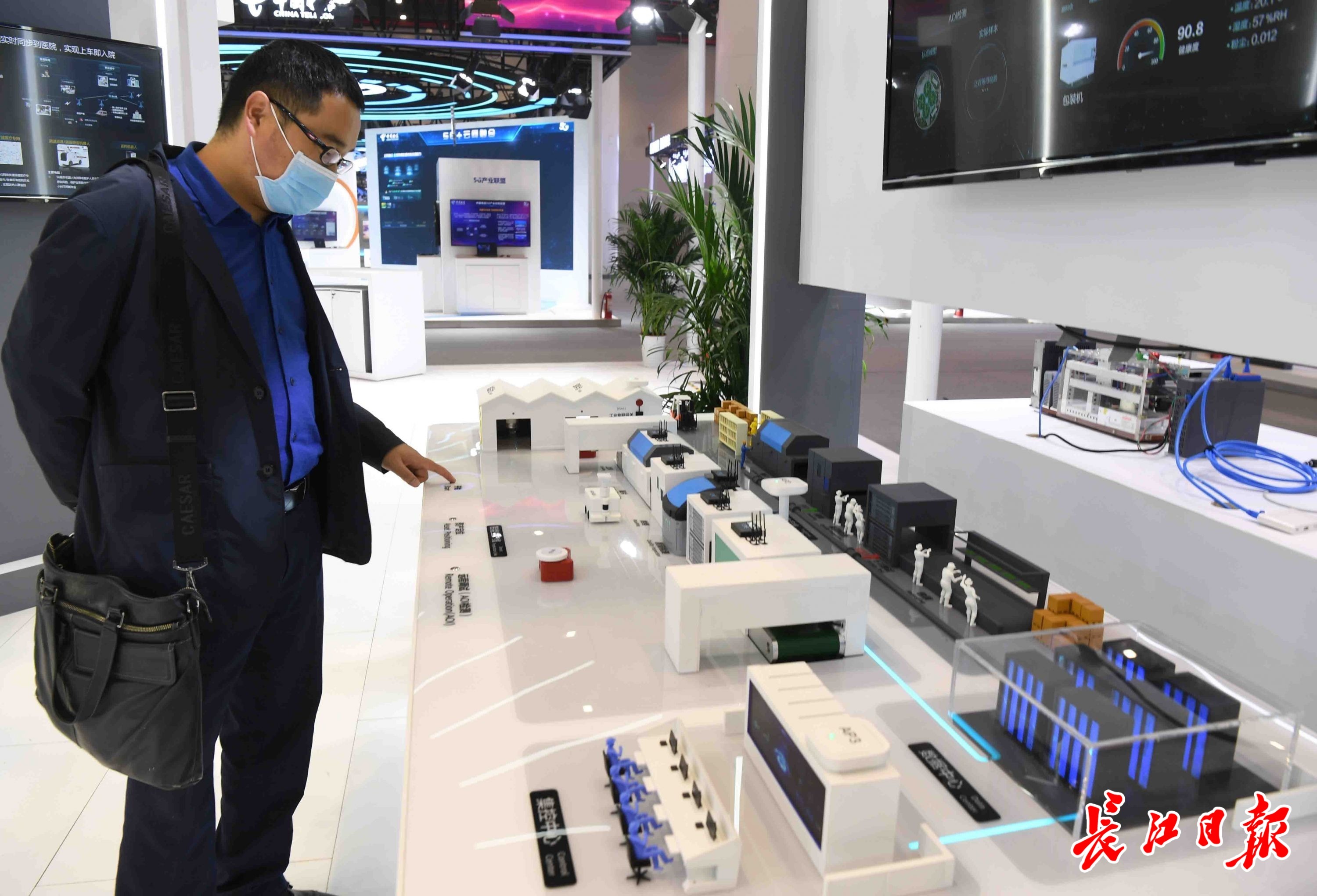 5G+工业互联网成果展上,华为公司展示的5G全联接智能工厂仿真模型。长江日报记者高勇 摄