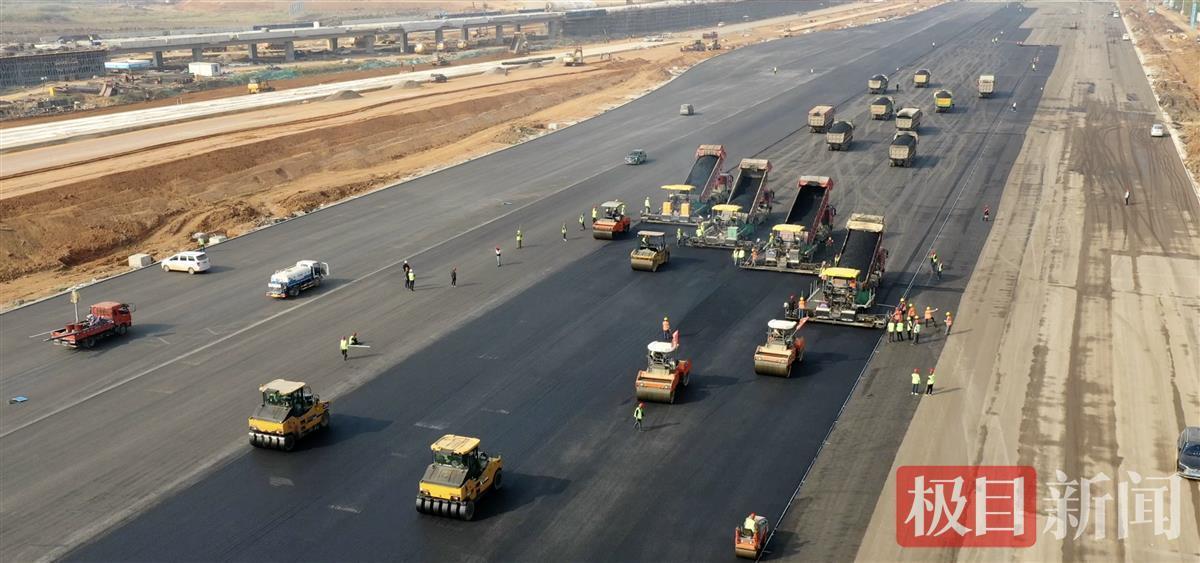 机械林立,赛道蜿蜒。11月19日,一望无际的测试场内,黄色土方与黑色沥青路面交相分布。随着摊铺机、运输车来回穿梭,施工人员加紧装填物料,铺就路面。