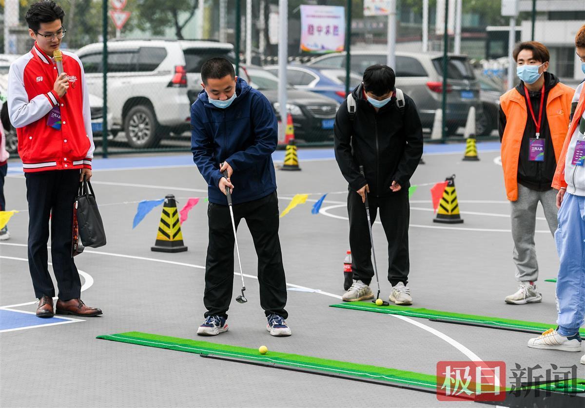 除了比赛之外,赛事组委会还在洪山体育馆南广场开展了运动嘉年华体验活动,设置了趣味高尔夫、趣味投篮、手脚并用、稳中求胜等趣味运动项目,并贴心地准备了不少小奖品。极目新闻记者看到,不少打完比赛的选手纷纷前来体验。如果你感觉还没运动到位,洪山体育中心特意安排了免费健身活动,参赛队员当天可凭参赛证免费在英东游泳馆进行健身锻炼。