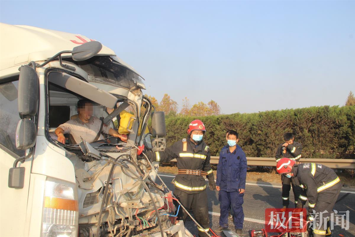 消防员到场后,只见事故为两辆货车发生追尾,后车驾驶室严重变形,司机双腿被卡在座位与驾驶台之间无法动弹,身上有明显的伤口,正不断流血,情况危急。