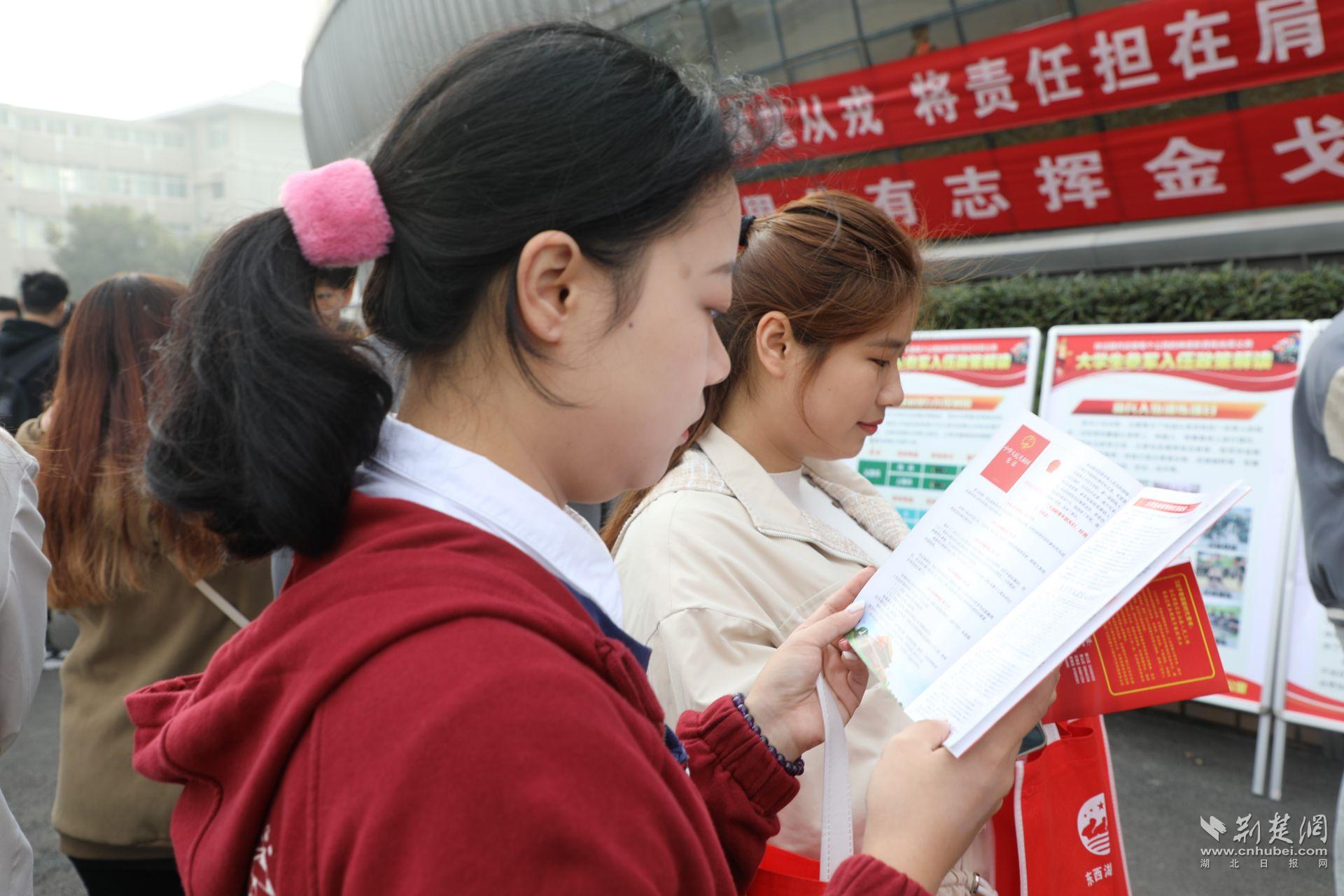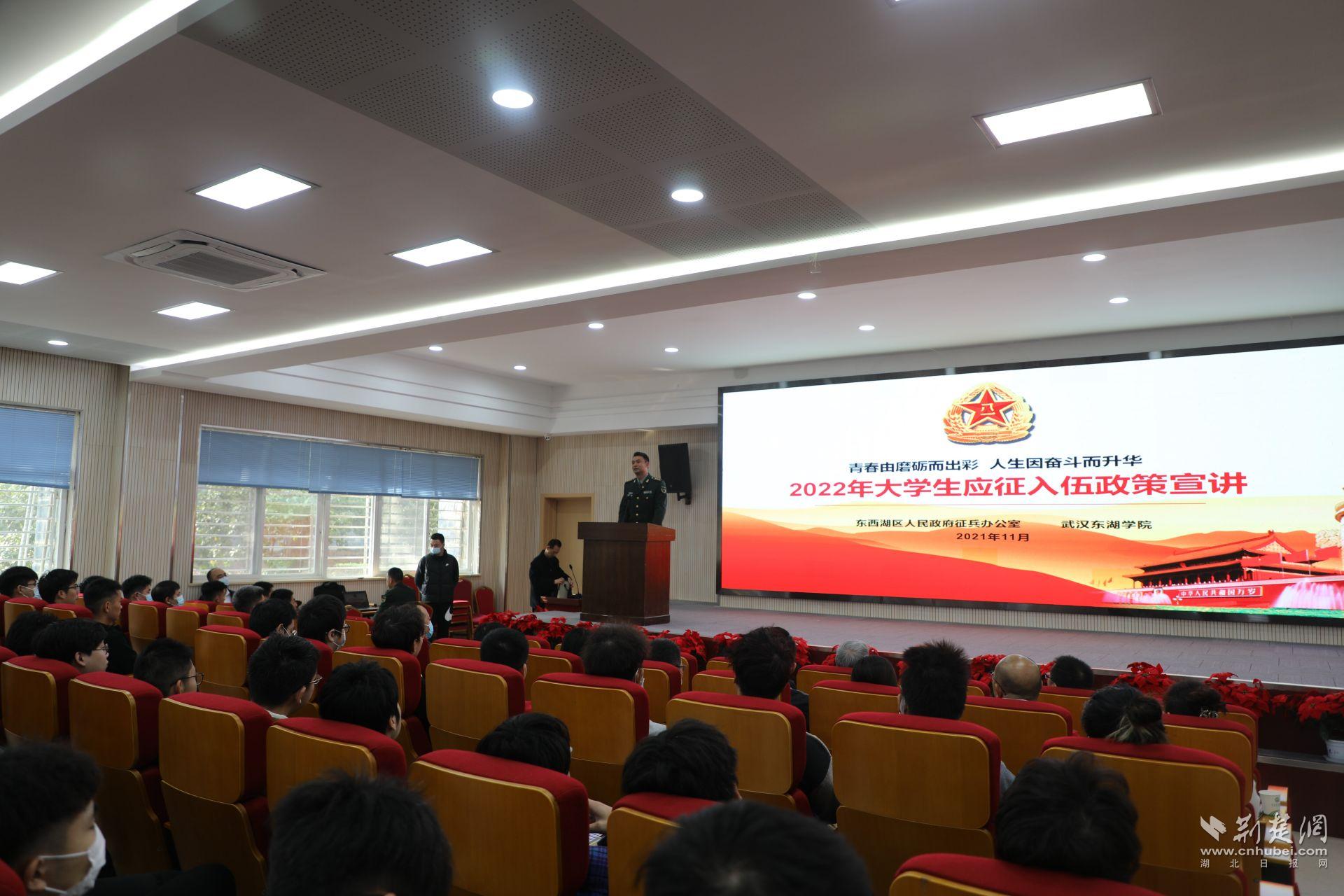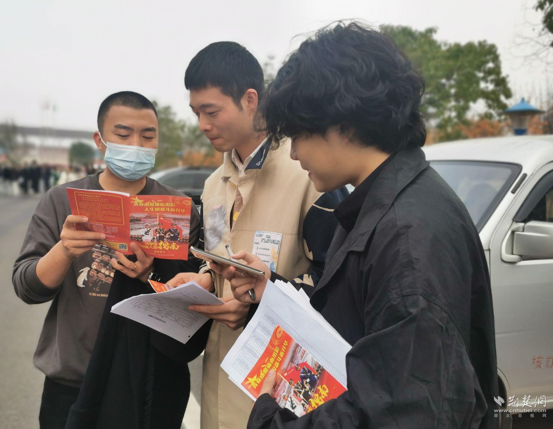 荆楚网(湖北日报网)讯(通讯员朱铭 王振海)“在多次的定点宣传中,我详细了解到大学生参军的很多优待政策,也点燃了我的参军报国梦。在这次参军意愿宣传摸底时,我第一个报了名。”11月19日,武汉东湖学院大四学生王云龙表达了强烈的参军意愿。