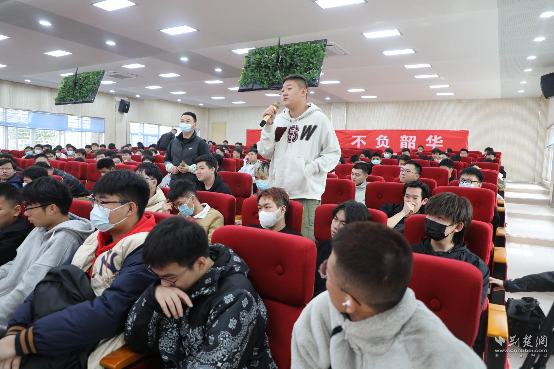 在武汉东湖学院,中国酒泉卫星发射中心某部原团政委夏道季,退役女兵、武汉东湖学院学生张骏琳,退役士兵、武汉东湖学院学生李龙和张本虎分别结合军旅生涯,分享了携笔从戎的故事和人生意义。