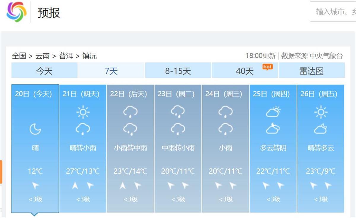 19日、20日,镇沅县天气情况良好,给搜救工作带来很多便利,但未来几天的天气情况或有所变化。中国天气网显示,镇沅县从11月21日开始将迎来新一轮降雨,这或将给救援工作带来更大的困难。