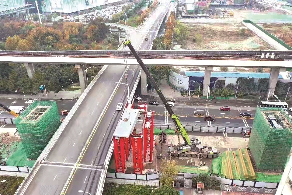 楚天都市报极目新闻讯(记者陈建 通讯员徐晓彤)11月20日,在轻轨1号线竹叶海站附近,武汉南泥湾大道(三环线—汉西三路)改造工程一标首节段钢箱梁吊装完工(如图)。这标志着南泥湾大道改造工程正式开始上部结构钢箱梁吊装施工。