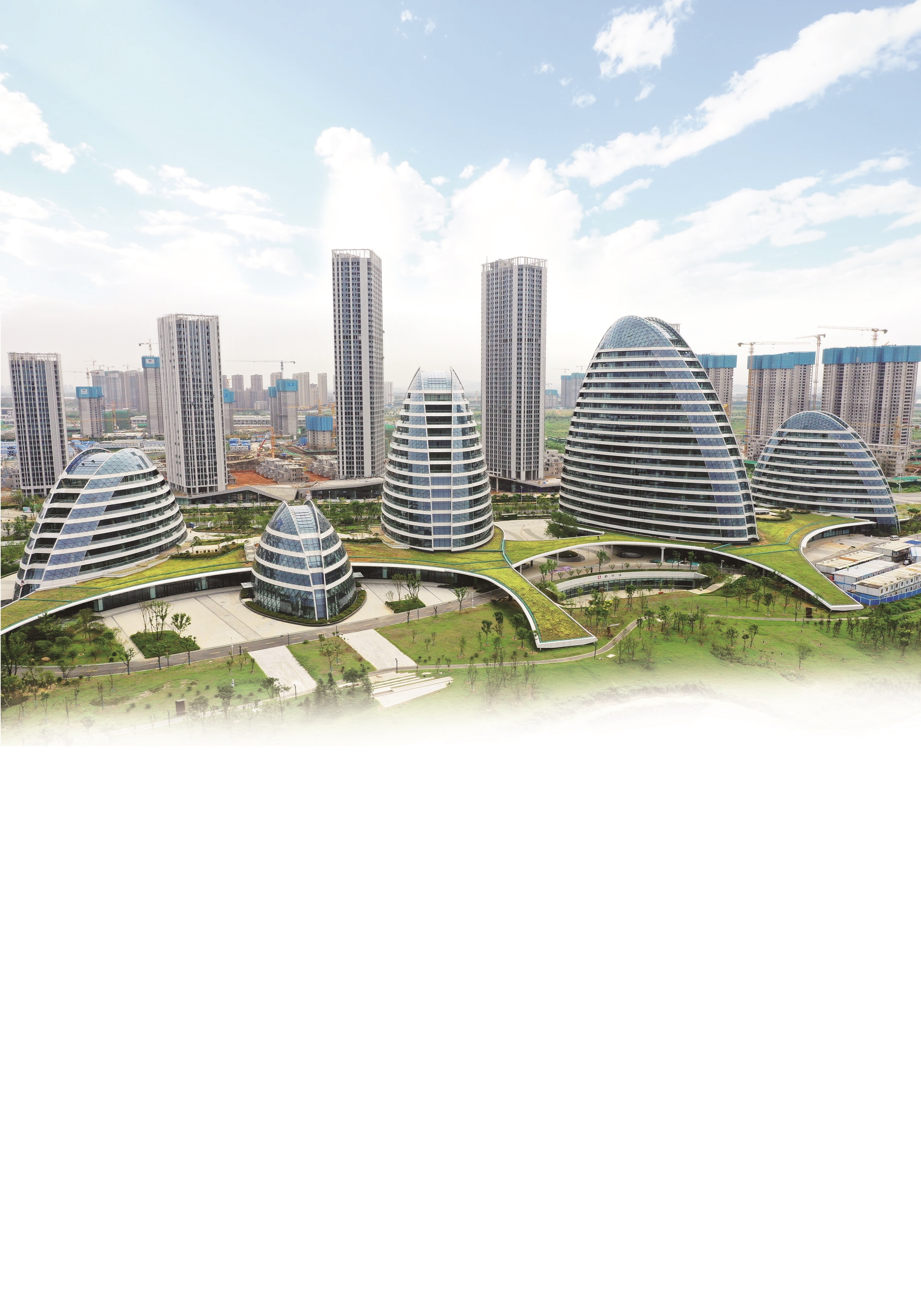武汉之南,军山新城,5栋造型别致的塔楼耸立,如同5个破土而出的巨型春笋,站在这里,仿佛能听到这座城市拔节生长的声音。