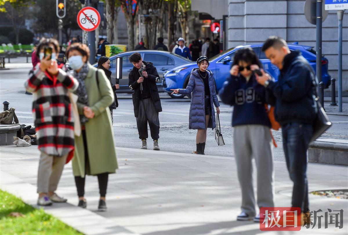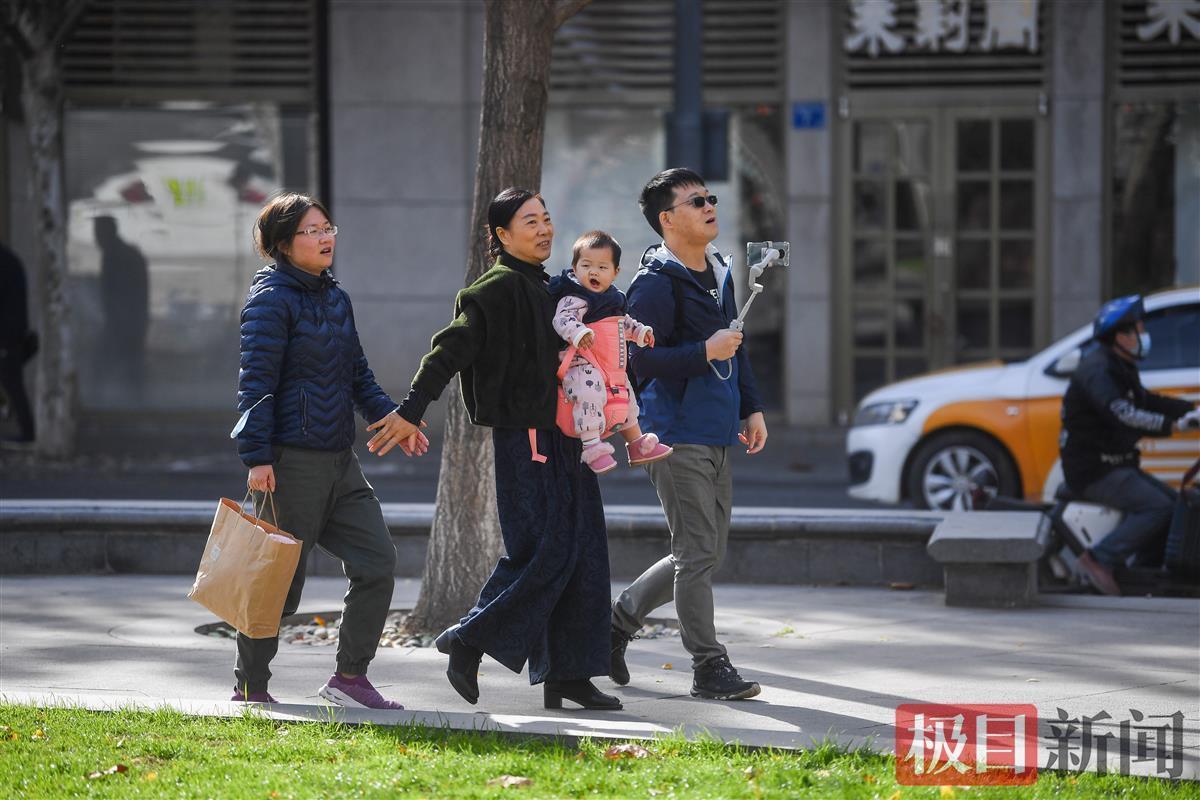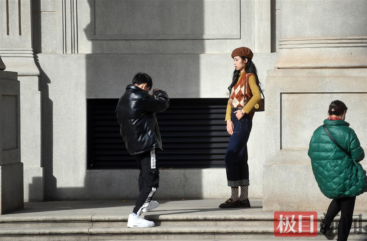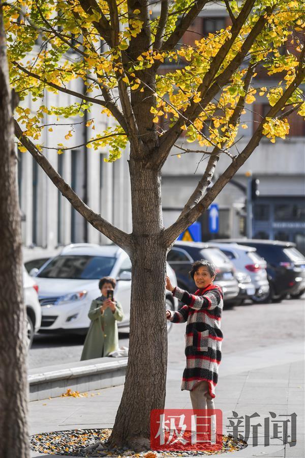 11月22日“小雪”节气,午后阳光又露出笑脸,一扫早间急速降温带来的寒冷,变得温柔可人。在汉口南京路一广场上,两排大树吊满黄叶,在蓝天映衬下显得金灿灿十分耀眼,不少市民纷纷来到户外晒晒太阳,拍拍照,定格这冬日阳光下的惬意。