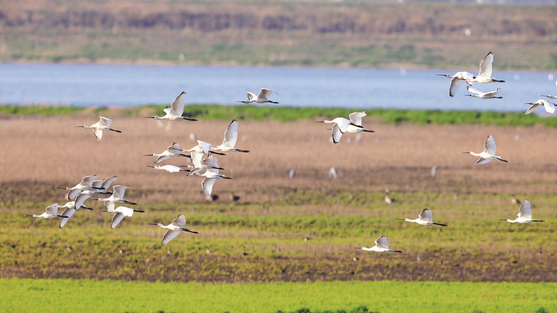白琵鹭沉湖自由行 图片均为颜军摄