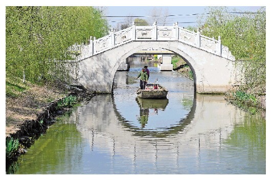 盐城市佳富村村民清洁河道(3月26日摄)。