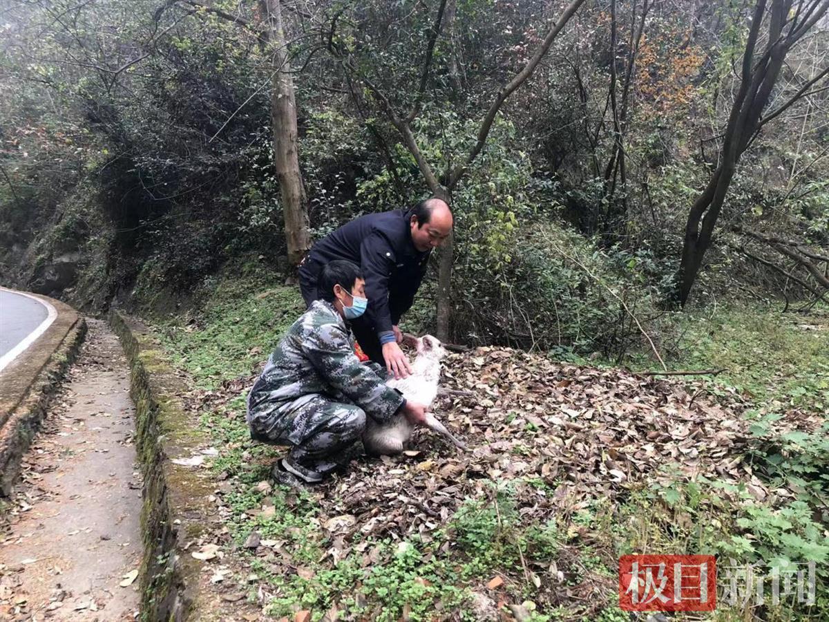 “一只野生动物好像受伤了,在逍遥谷,你们快来看看吧!”日前,武当山景区护林防火大队在接到电话后,大队长刘锋立即与两名护林员迅速赶到现场,经辨认是一只成年的黄麂。