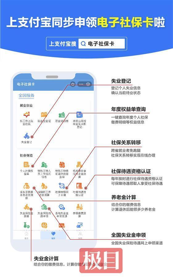 日前,人社部发布通知,在全国范围内推进电子社保卡同步申领。在第三代社保卡发行的基础上,建立电子社保卡同步申领机制,实现群众申领第三代社保卡后,全国社保卡服务平台即时签发电子社保卡,为群众提供更加方便、快捷的服务。武汉市民可上支付宝同步申领电子社保卡,在线一站式办理40多项服务。