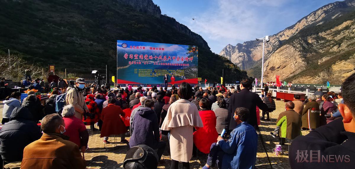“哟!劲逮逮,哟!劲逮逮,敲的那个脚板板硬起来,十八弯山路脚不歪……”激情澎湃的表演唱《敲起琴鼓劲逮逮》旋律在巍峨的链子崖下奏响,现场数百名观众的热情瞬间被点燃。紧接着,歌曲《红船》《你的答案》《把一切献给党》《丰收中国年》《常来常往》,相声《说硬道软》,川剧《变脸》,杂技《力量》,黄梅戏《江姐——春蚕到死丝不断》,湖北大鼓《百年创辉煌》,歌舞《农民人真伟大》《不忘初心》相继亮相。
