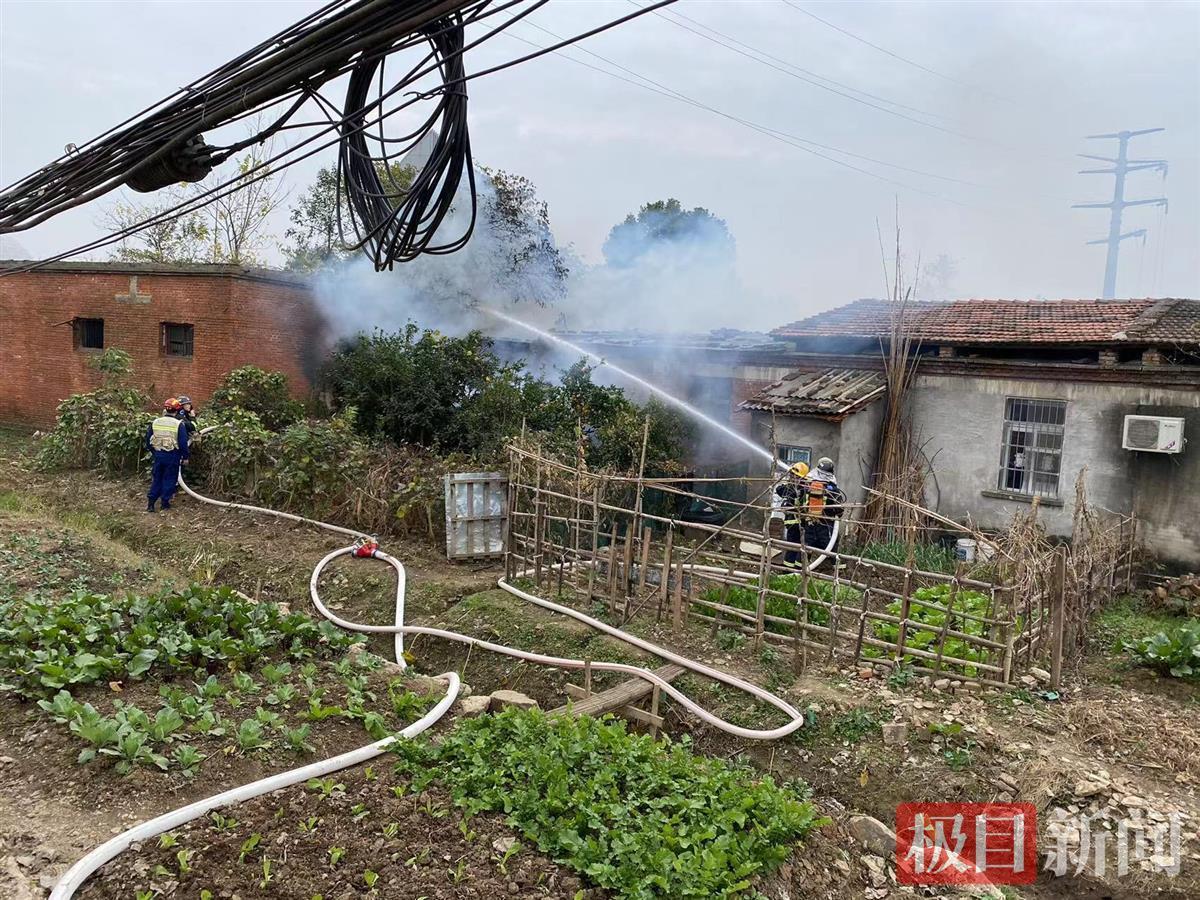 刚松口气的两名队员发现,消防员全力在隔壁火势更大的居民房屋外灭火,一旁堆放着许多废弃木料废弃瓦房内已隐隐有火苗。