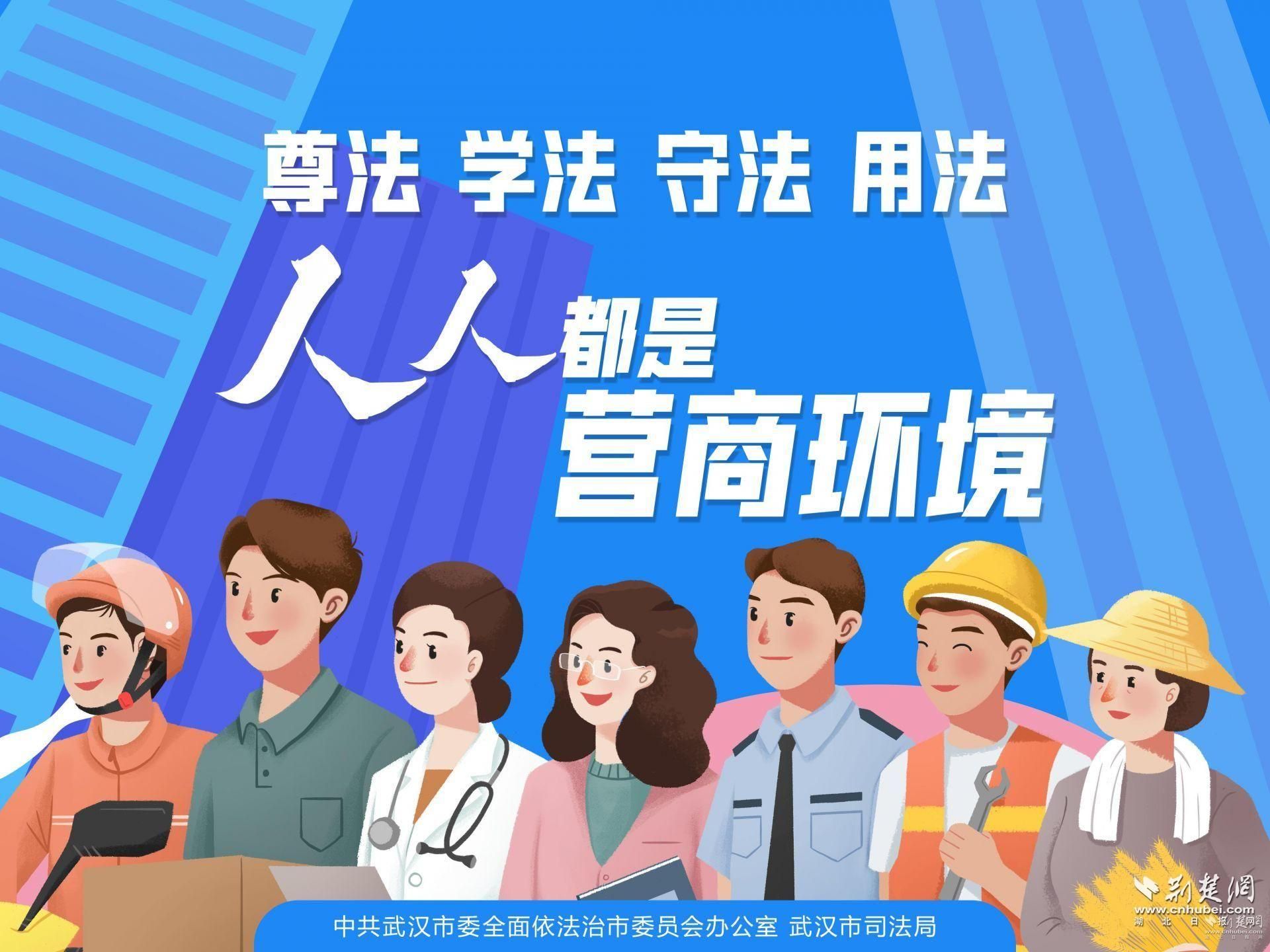 此次闪屏行动由武汉市司法局联合武汉市城管委,在全市所有户外LED屏上,滚动播放以优化营商环境为主题的法治公益广告,五张大幅海报刷屏大街小巷,真正让法治宣传走进千家万户。