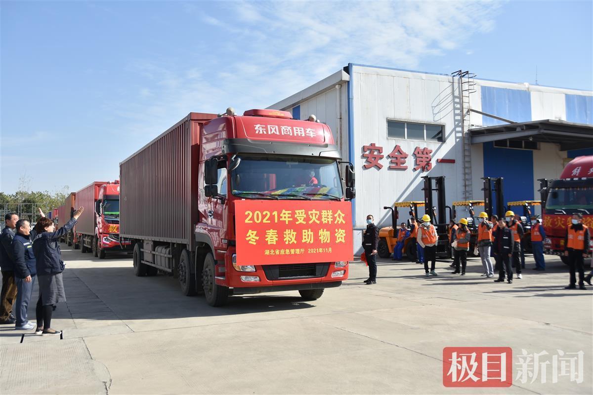 23日,满载救灾物资的数十辆卡车从中央救灾物资武汉储备库和宜昌、咸宁、恩施、十堰、荆州、襄阳等6个省级救灾物资储备分库驶出,宣告湖北省冬春救助工作正式启动。