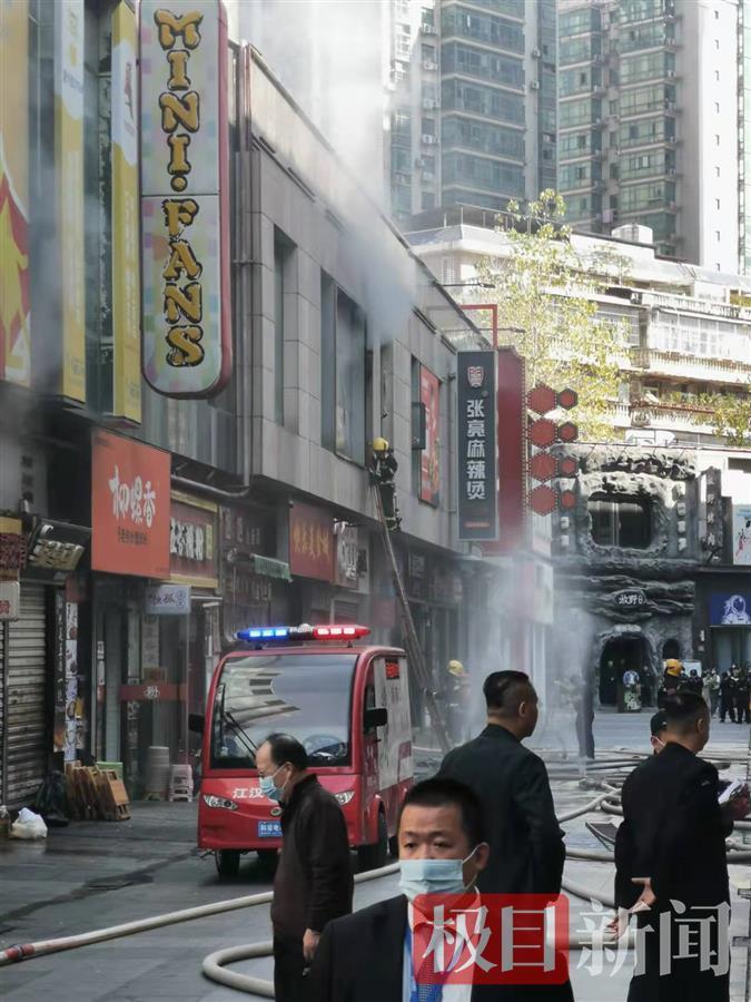 11月23日上午,极目新闻记者来到火灾现场实地探访,只见快乐美食城起火店铺过火痕迹明显,相邻的店铺均已停业整顿。记者来到与之一街之隔的万达商场,走进商场内的微型消防站,灭火器、消火栓等消防设施都处于完整好用状态,身穿制服的工作人员正在值班。