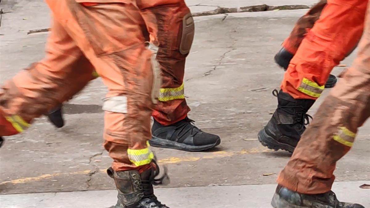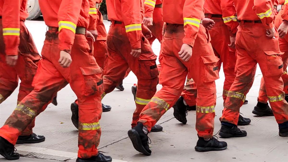 消防队员裤腿沾满泥巴 视频截图