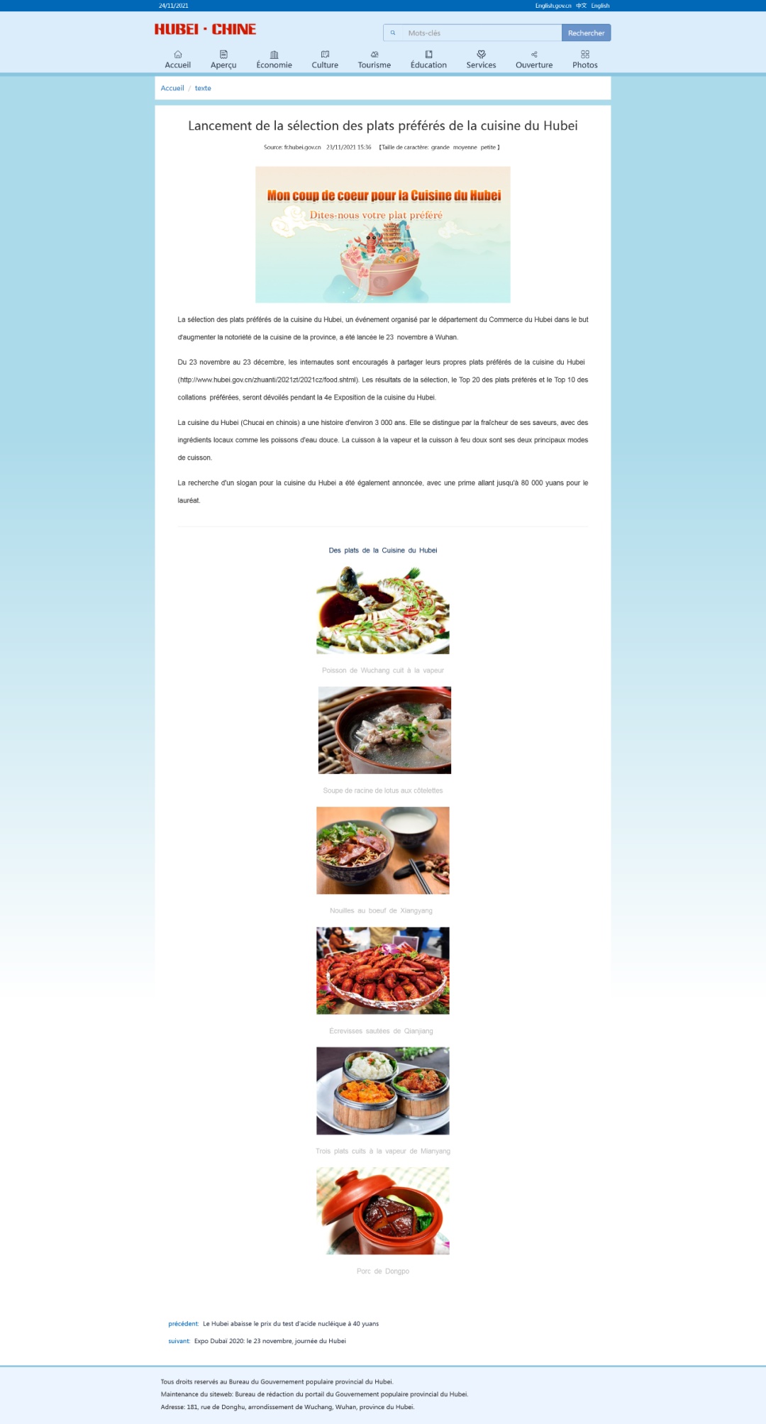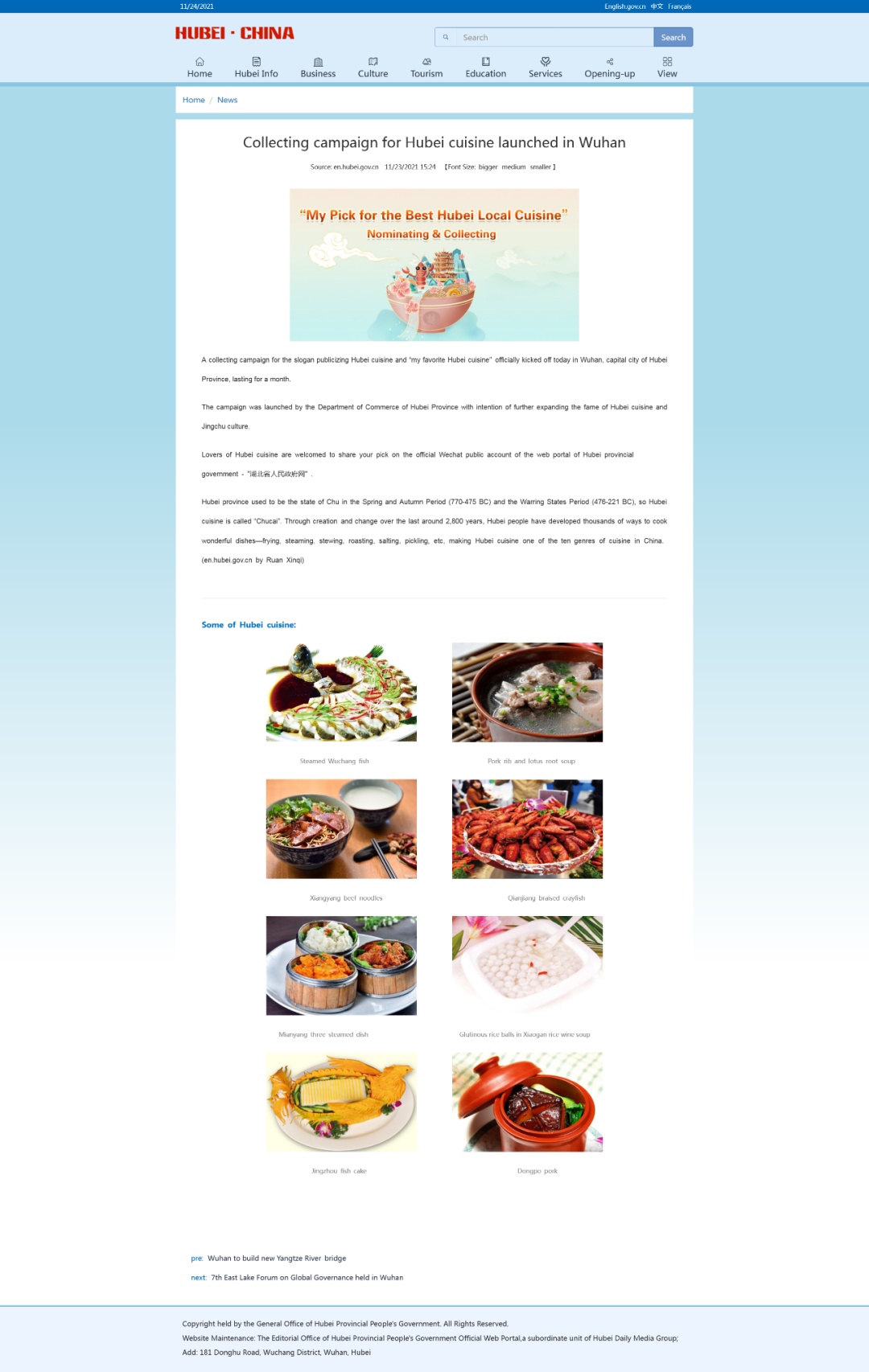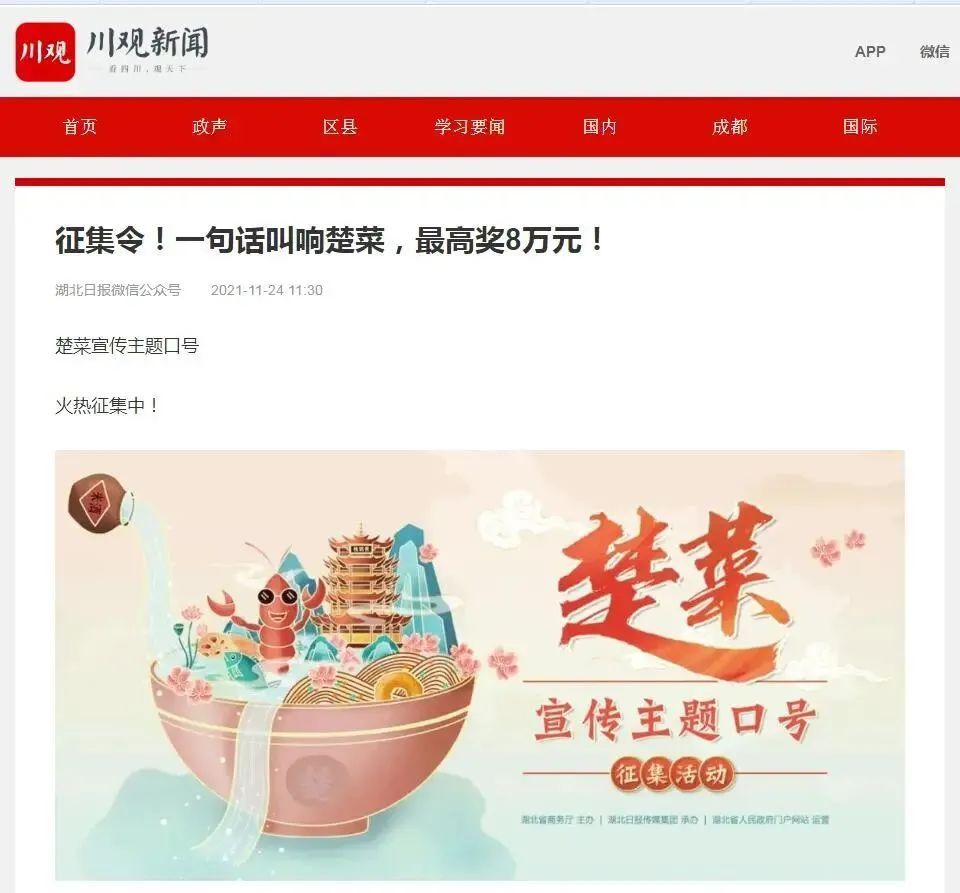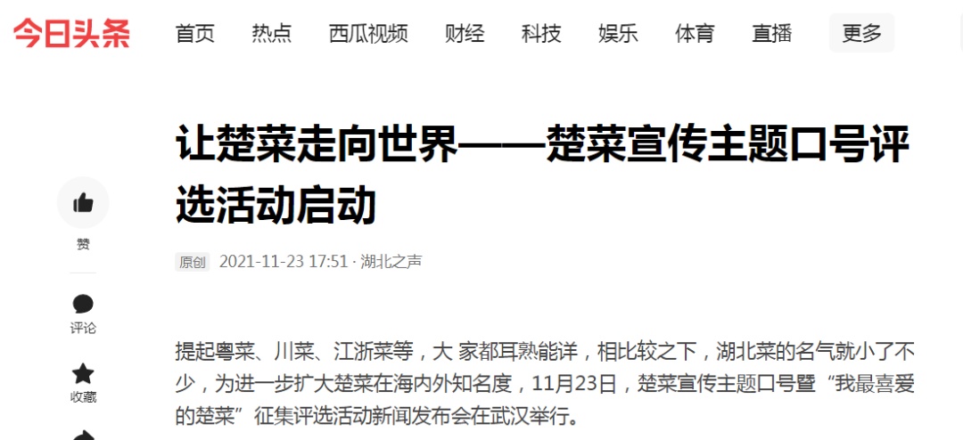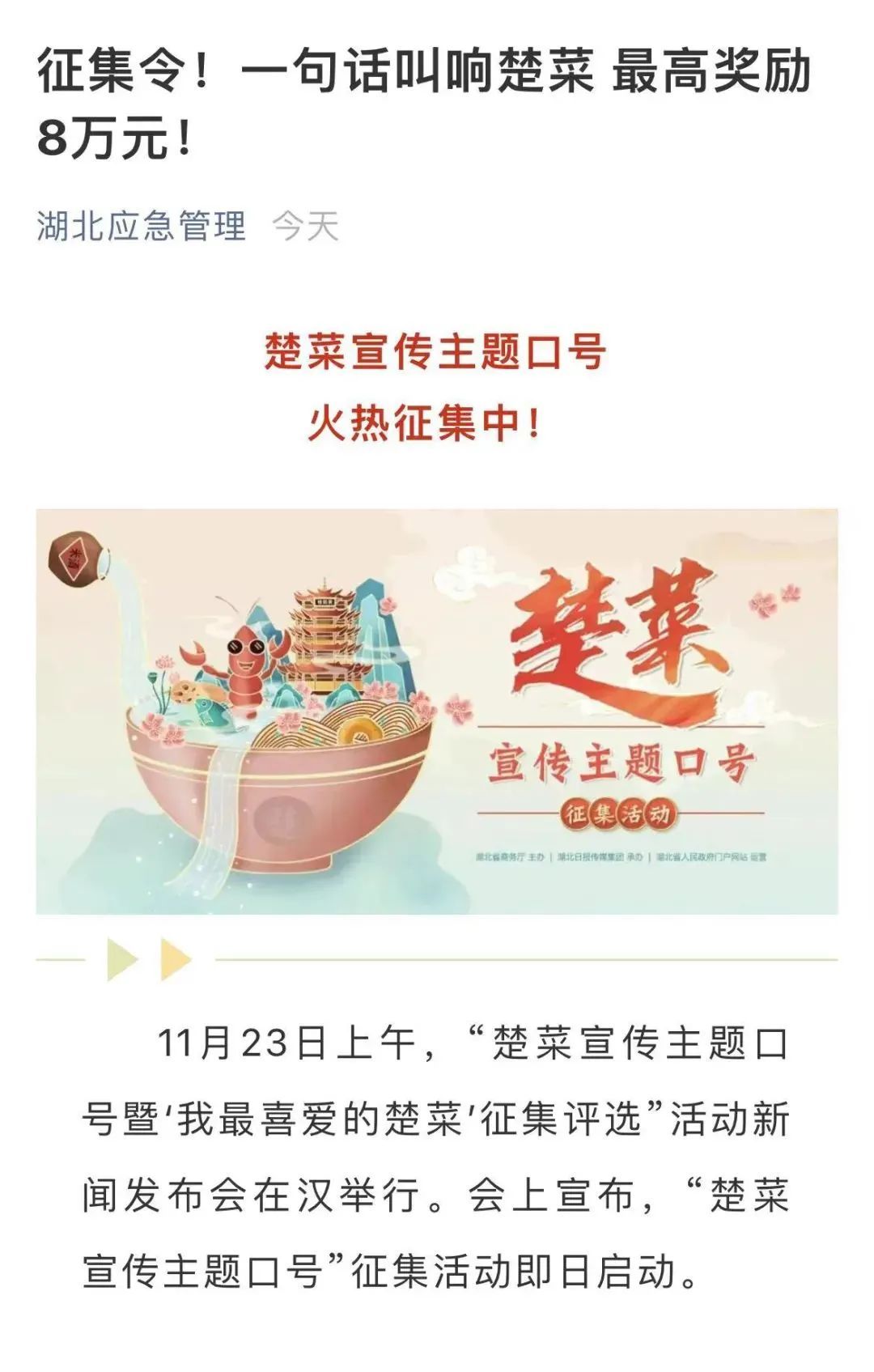 11月23日上午,楚菜宣传主题口号暨“我最喜爱的楚菜”征集评选活动新闻发布会在汉举行。会上宣布,继“我最喜爱的楚菜”征集活动之后,“楚菜宣传主题口号”征集活动也正式启动。