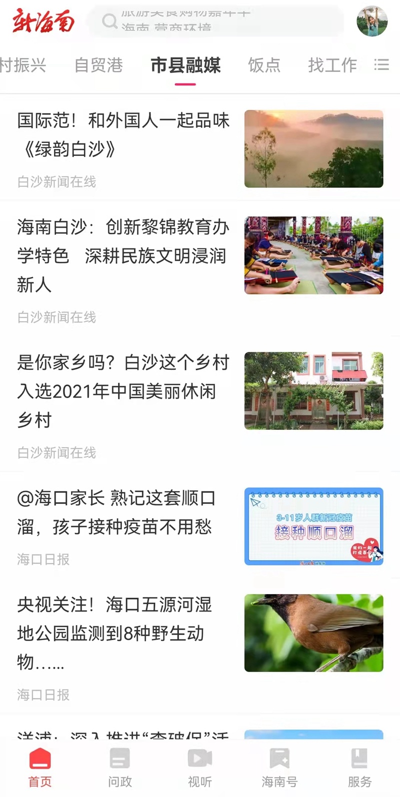 此外,新海南客户端已全部接入海南各市县融媒体中心,开设有市县融媒及20个市县开发区融媒频道,汇聚各市县融媒体中心的最新信息,助力打通基层传播“最后一公里”。截至目前,市县融媒频道累计发布稿件逾5万篇,吸引上亿人次浏览。