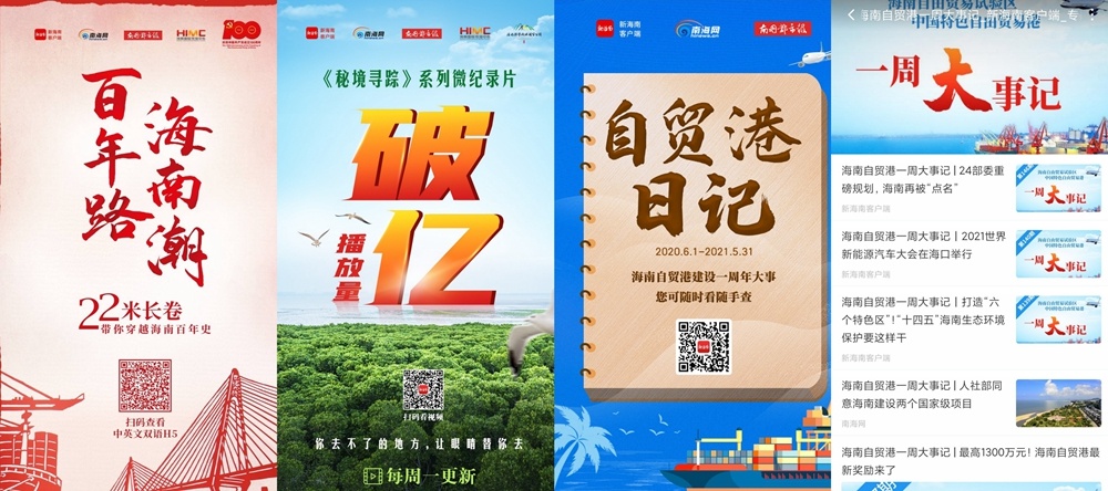 全方位多角度传播海南自贸港建设的好声音,展现自贸港新作为。《海南自由贸易港建设总体方案》发布实施一周年之际,新海南推出大型融媒专题《自贸港正青春——海南自贸港总体方案发布一周年特别报道》,开设海南自贸港24小时、蹄疾步稳新征程、自贸港的年轻人等版块,以图文、视频、H5等多种形式,全方位展示海南自由贸易港建设一周年成果。