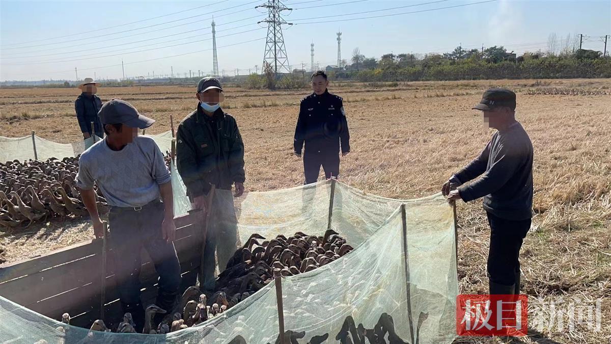 清晨放鸭子,两家农户的鸭子不慎跑到一个水塘“玩耍”,咋整?把这近4000只鸭子分给两个人,一人分得多少只?对于武汉市公安局黄陂区分局罗汉寺街派出所民警来说,这可不是一道简单的数学题,民警们足足花了3小时才数清楚鸭子的数量。