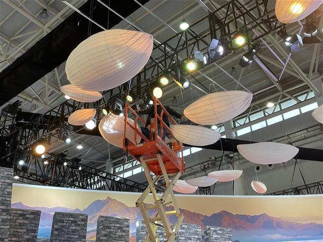 此前剧透的重点大美中国馆已全部安装到位,不少头戴安全帽的工作人员正在进行最后的收尾工作。国内最大双面环绕柔性屏卷轴已完全呈现在观众面前,“黄河之旅”“运河之旅”“长江之旅”“长征之旅”“长城之旅”“一带一路”等六大主题,以极致声光电形象呈现,一幅幅展示中国壮美山河的画面扑面而来。3000平方米展厅居中位置,设置了璀璨“星空”,56个民族的名字熠熠生辉。“星空”由流动的光柱与大地相连,34个省区市的文旅心声不断闪现,如源头活水,融通与共。