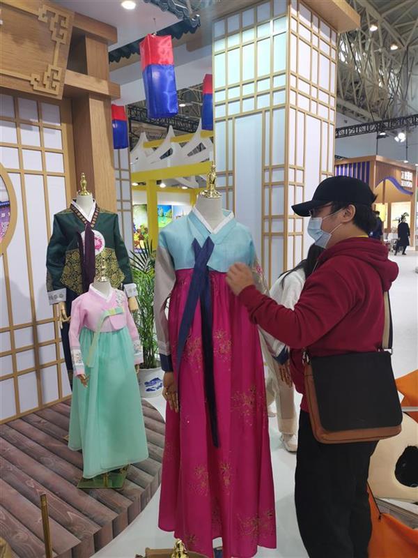 记者走进韩国馆,韩流扑面。展厅中心立着最具标志性的首尔地标南山塔,精美的韩服、大幅知名韩剧剧照环绕。韩国旅游发展局武汉办事处首席代表金到希介绍,展厅复制韩国本土建筑风格与现代韩流相结合,观众可以参与韩国传统游戏,回答互动问题,参与现场打卡活动,即可有机会领取惊喜礼品。