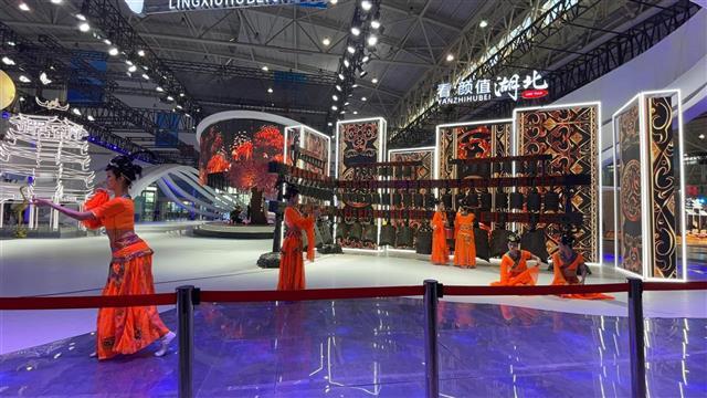 上海有咖啡,武汉有奶茶,记者在武昌区展台发现,名为“鹤鹤仙茗”的奶茶摆放齐整,等着观众进场品尝。在新疆、广西等省区展台及我省的襄阳、随州、咸宁等市州展台,地方美食云集,眼睛享受美景的同时,舌头也可以在文旅博览会上云游世界。
