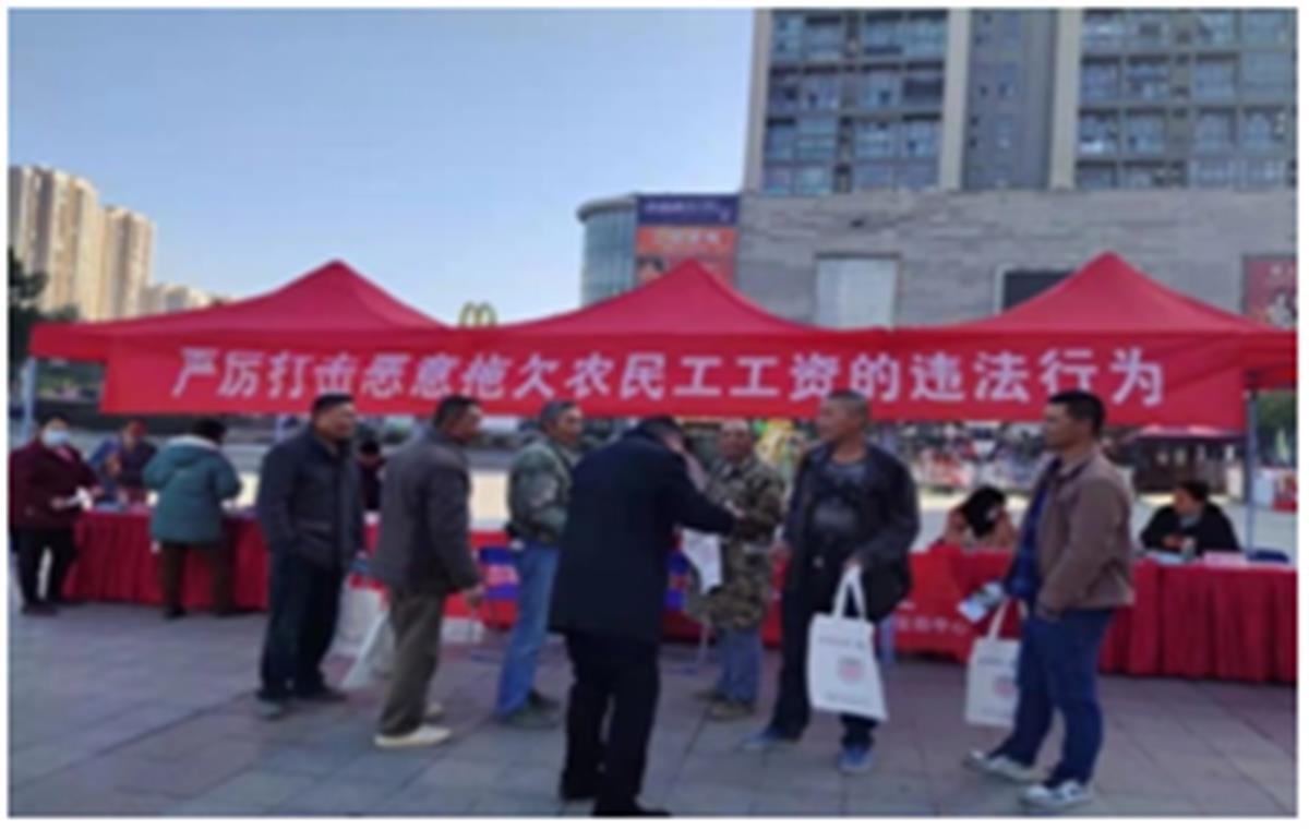 活动现场黄陂区人社局工作人员为200余名农民工提供了拖欠工资、社会保险、司法援助、工程建设等相关法律咨询,他们热情耐心细致地为群众答疑解惑,引导现场农民工依法维权,努力疏导矛盾、获取理解,为农民工们维护合法权益指明方向。