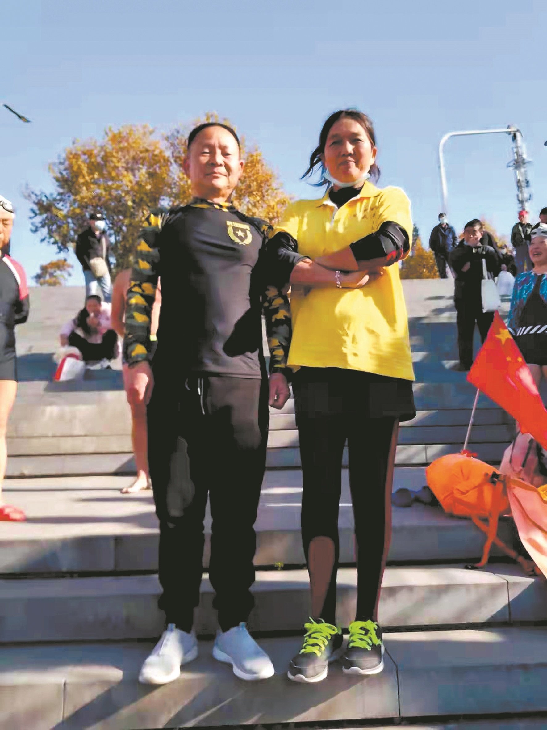 24日,吴红文向极目新闻记者讲述了事发经过。当天下午2时左右,她像往常一样来到了汉阳门码头,和队员们正在做下水的准备活动。突然听见有人大喊:“有人要从长江大桥上面跳下来啦。”她和队员们一起往长江大桥方向看去,只见有一个人翻过大桥栏杆,蹲在桥边沿上。周边不少人在围观,警察已拉起警戒线,桥下还有水警的船只在待命。