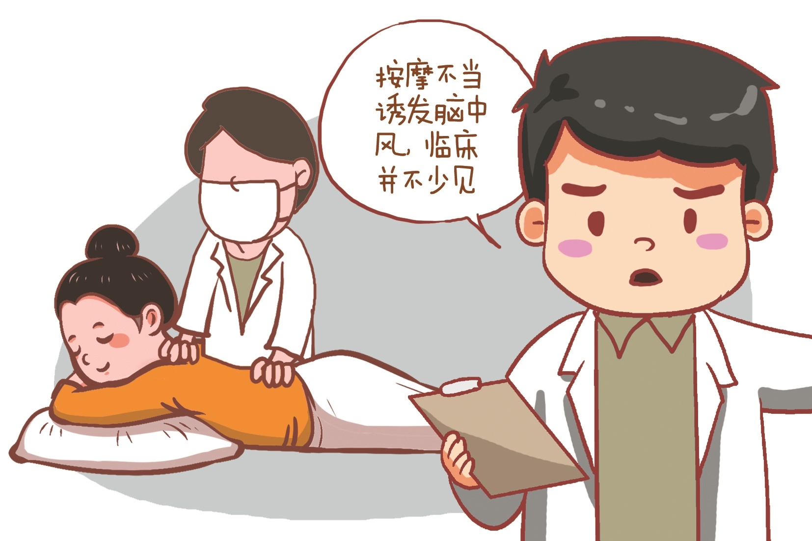 事后,朝浩询问得知,患者发病前做过颈部按摩,因而推断此次突发脑中风可能与她按摩不当有关。