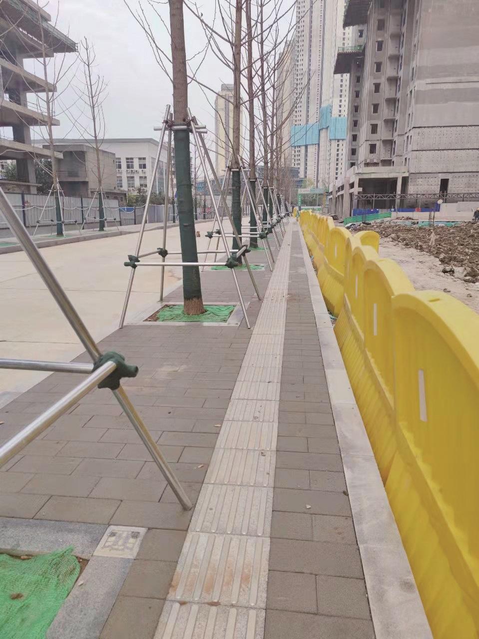 步行至紫沙路至西环路段,记者看到,路面均采用海绵铺装;绿化带内种植法国梧桐、红叶李等树种。导航显示,紫沙路至群建星城小区段已开放交通,剩余约400米道路正在打围施工。