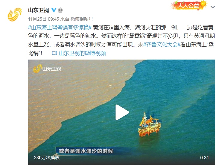 山东海上“鸳鸯锅”有多惊艳!黄河在这里入海,海河交汇的那一刹,一边是泛着黄色的河水,一边是蓝色的海水。然而这样的“鸳鸯锅”奇观并不多见,只有黄河汛期水量上涨,或者调水调沙的时候才有可能出现。