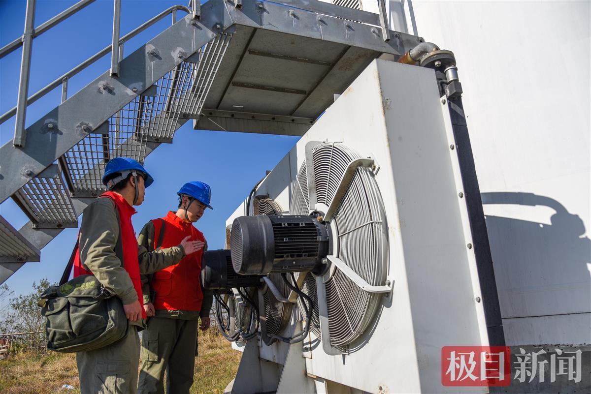 国网石首市供电公司桃花供电所电力工人在监测风电设备运行情况 (极目新闻记者 黄志刚 摄)