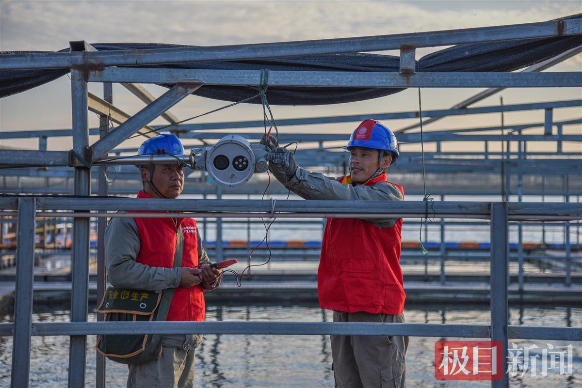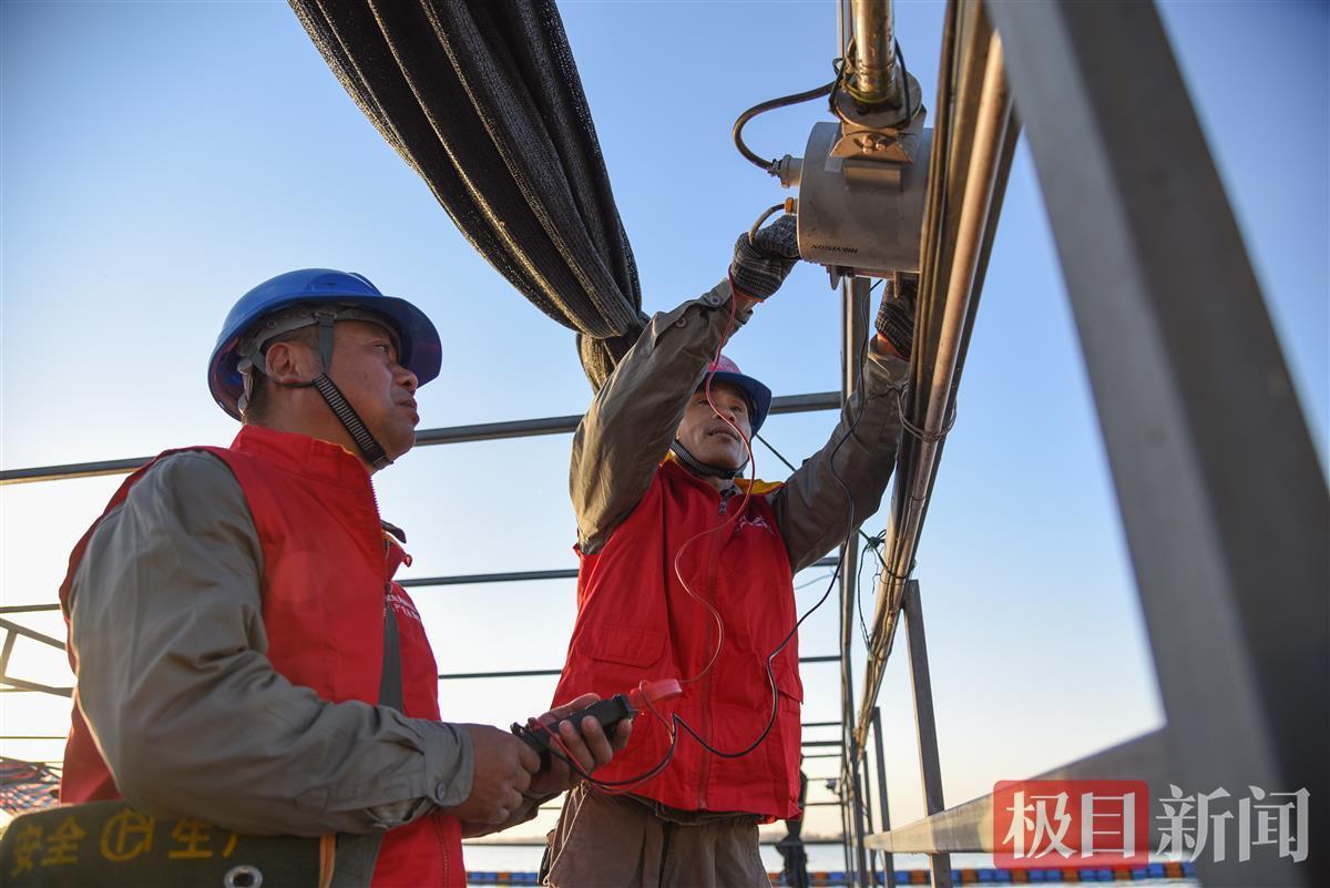 国网石首市供电公司桃花供电所电力工人在石首白鱀豚保护基地检修线路(极目新闻记者 黄志刚 摄)