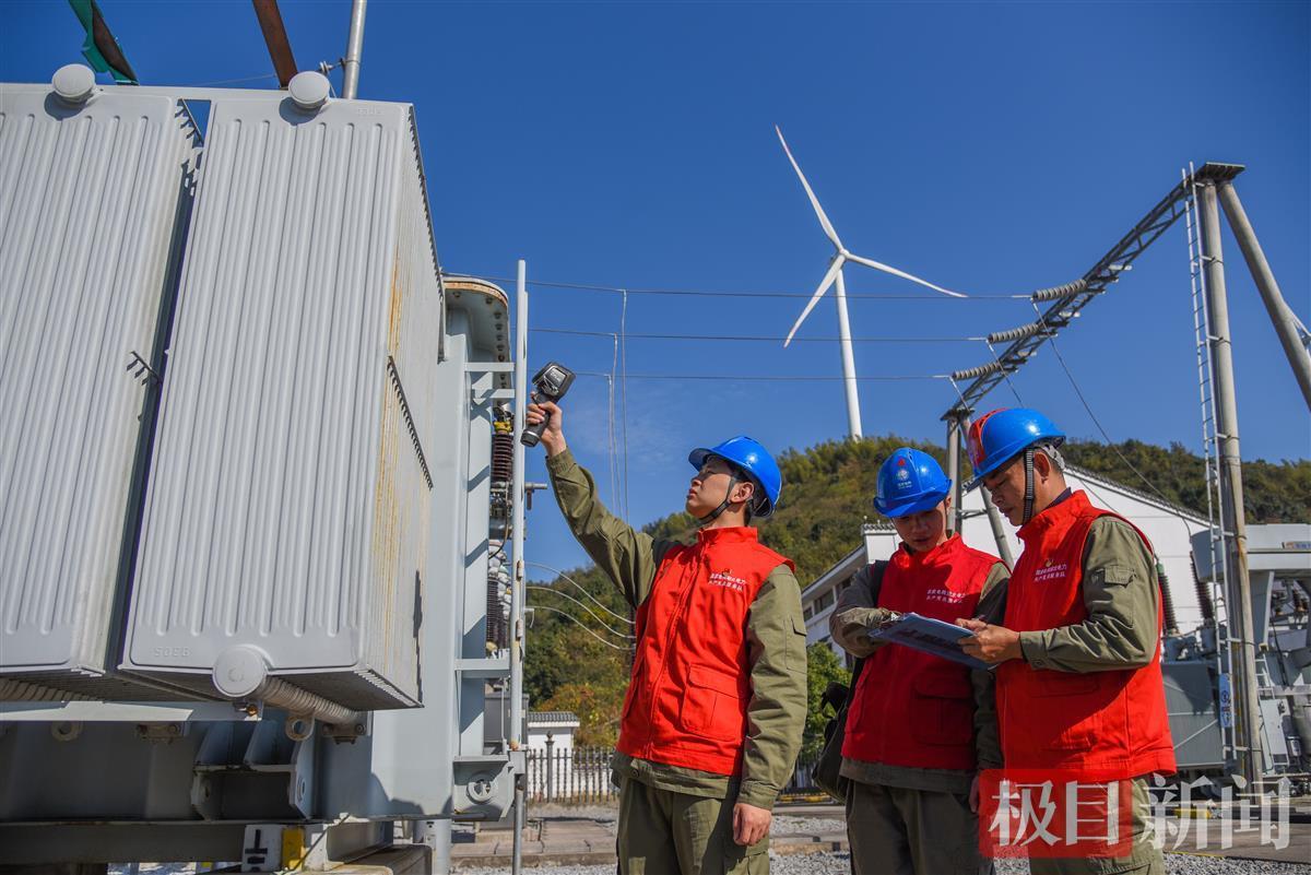 国网石首市供电公司桃花供电所电力工人在监测风电设备运行情况(极目新闻记者 黄志刚 摄)