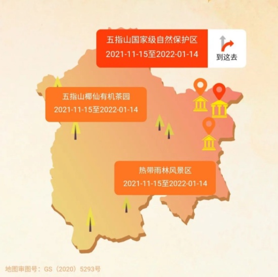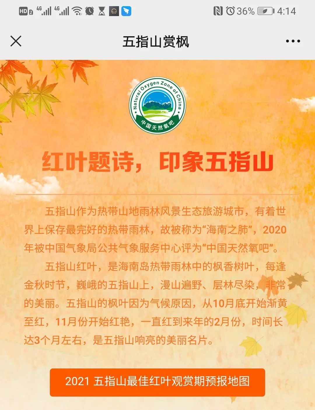 具体点击“海南气象”菜单栏“全域旅游”→“五指山红叶”