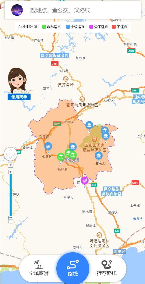 B、南水线——水满乡——五指山国家级自然保护区旅游景区——登五指山