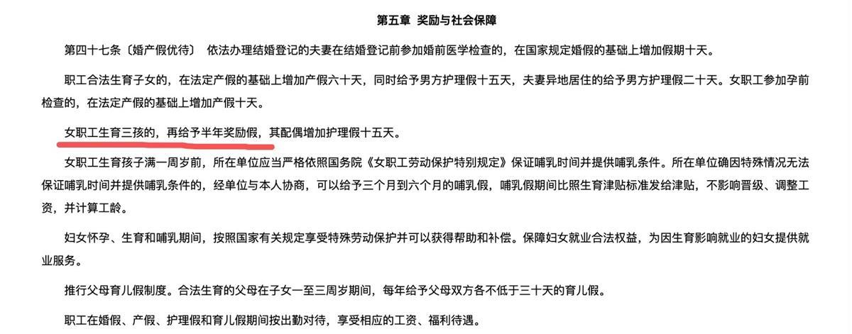 陕西省生育三孩可以休半年奖励假