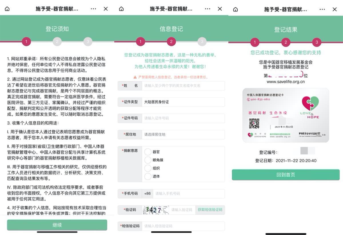 据介绍,“施予受”抖音小程序已于2020年6月9日正式上线。极目新闻记者打开抖音APP发现,通过搜索“施予受”小程序,或“施予受器官捐献志愿者服务网”,均可进入登记界面。“填写相应信息即可快速完成器官捐献志愿登记。登记完后,志愿者会拥有专属中国人体器官捐献志愿者登记卡。”据抖音相关负责人介绍,相关小程序上线至今,累计超25万人通过抖音完成器官捐献登记。