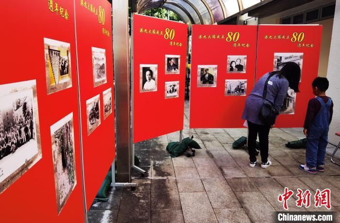 谢祥兴、黄观保、李汉等多名港九大队老战士出席开幕式并参观展览。在展览的一角,一名年青的母亲带着年幼的孩子,一边认真观看,一边给孩子讲解展板上的内容。(完)