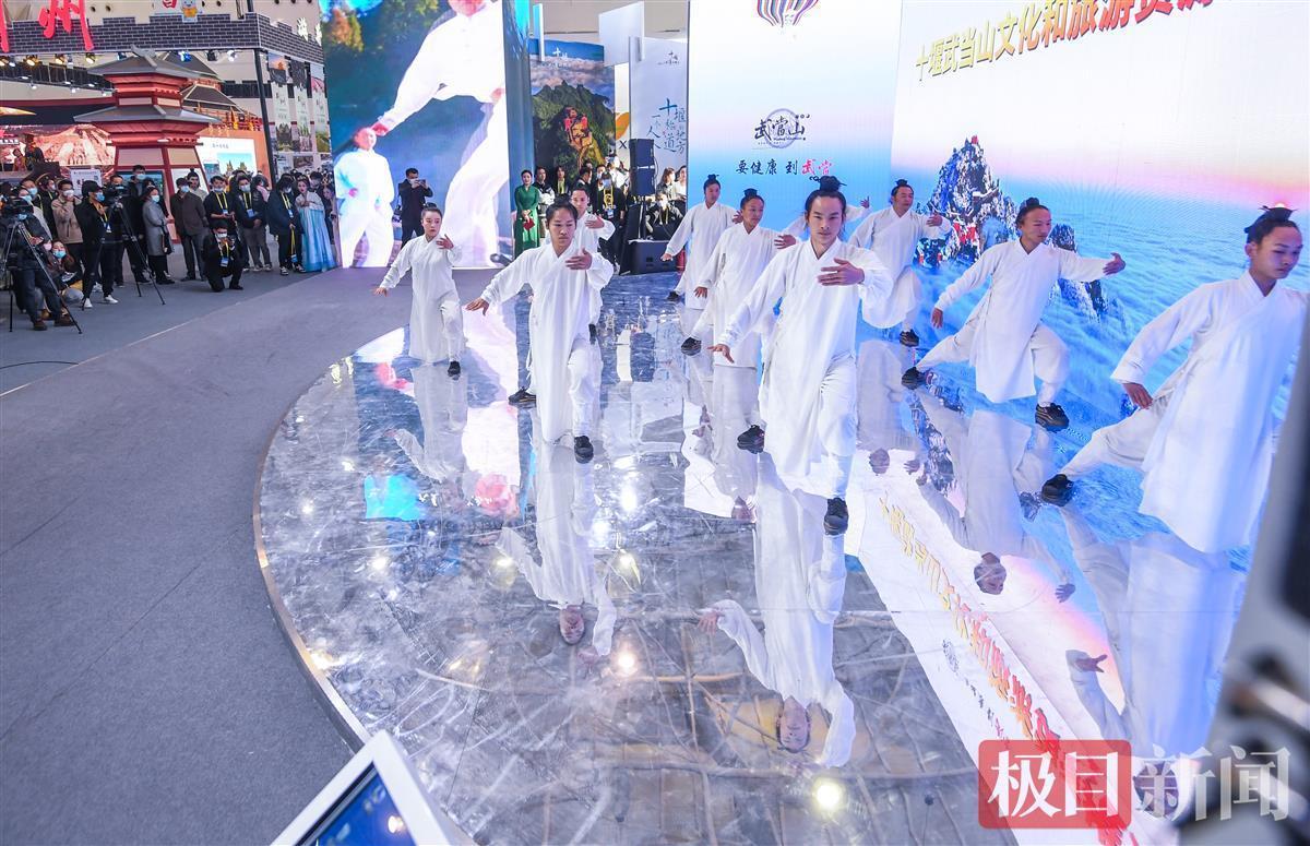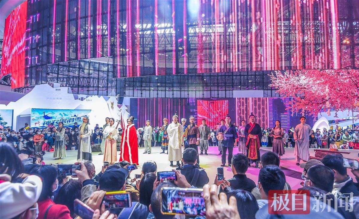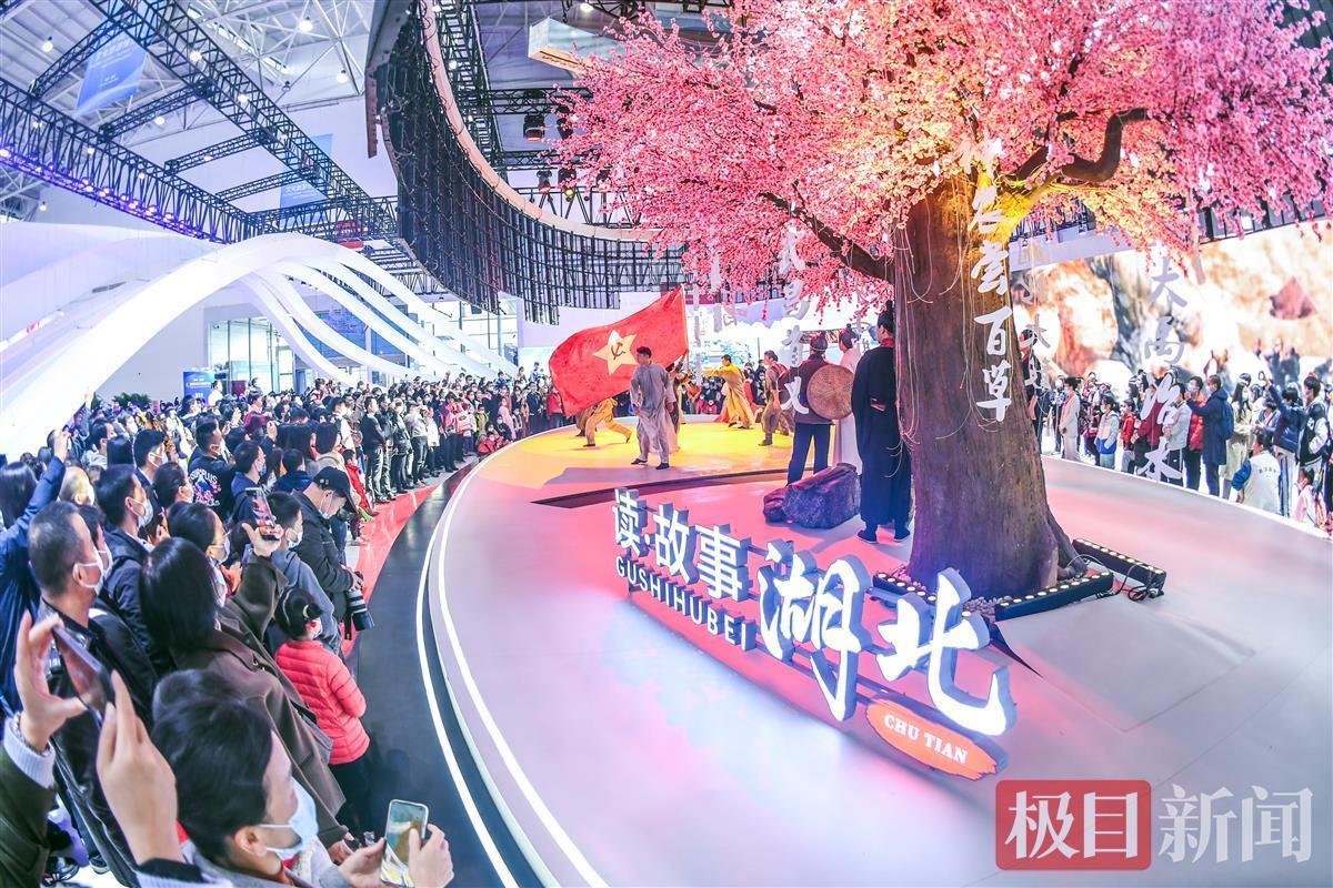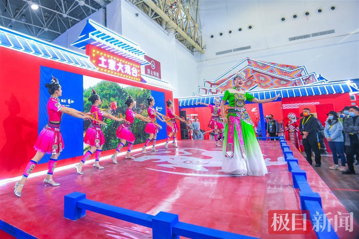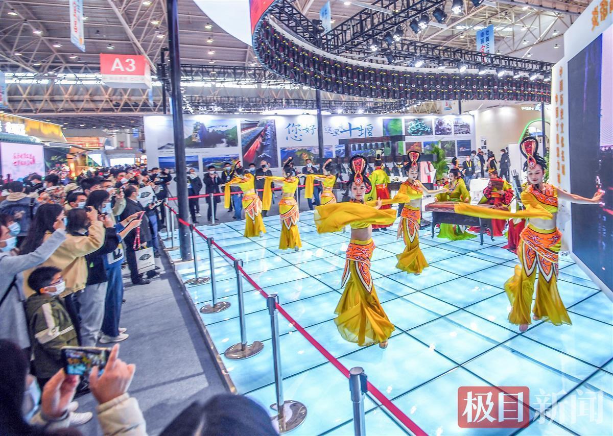 极目新闻记者逛到襄阳展区,市民正在这里围观极具当地风情的歌舞表演。工作人员向记者介绍了他们的精心设计,整个展区面积有500多平方米,以襄阳古城文化、三国文化、荆楚文化、红色文化、汉水文化和自然山水景观为背景设计,围绕着“美丽襄阳 绿色崛起”的主题,突出“襄阳好风日”城市品牌形象。