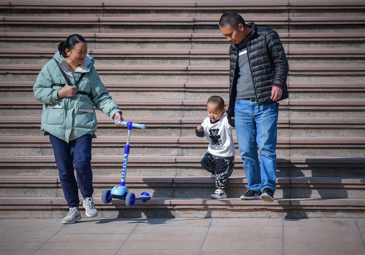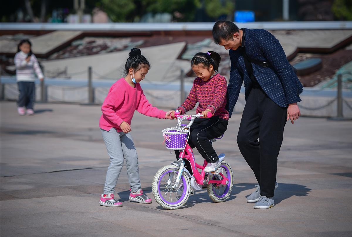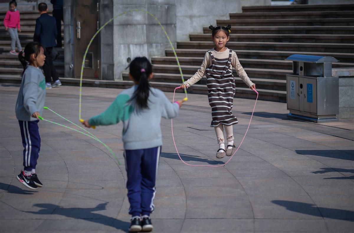 大人带着娃们在广场上晒太阳舒筋骨,小孩们在太阳下欢快的骑车、跳绳、玩游戏,广场一角的大人拉起二胡,也有的在翩翩起舞,一切都是那样和谐悠闲。