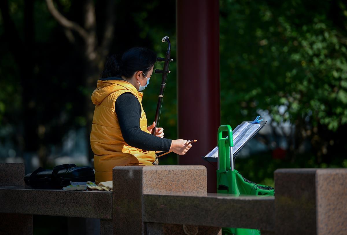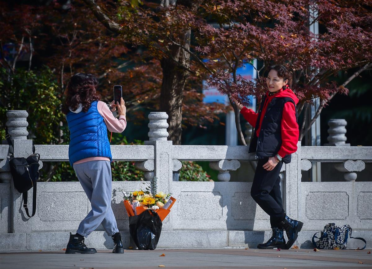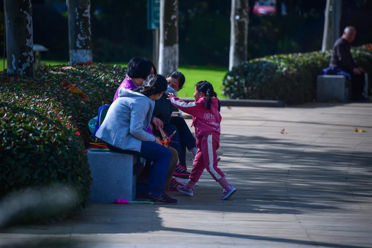 11月27日,艳阳高照,大家三五结伴,或拖家带口,来到武昌洪山广场晒太阳。