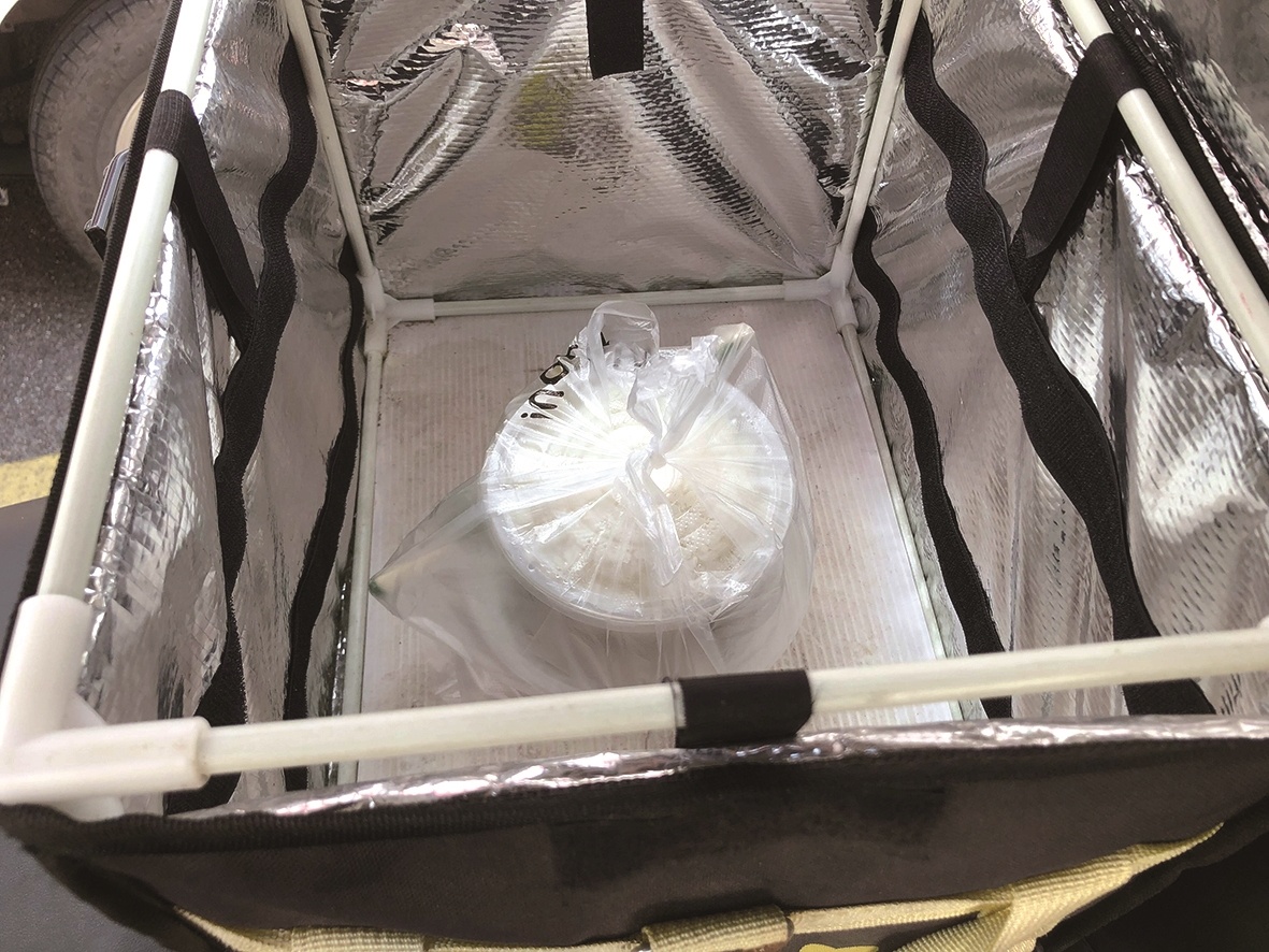 民警将停靠在河堤岸上的外卖单车运回派出所后发现,单车的储物箱内还有一份未送达的青椒肉丝外卖。