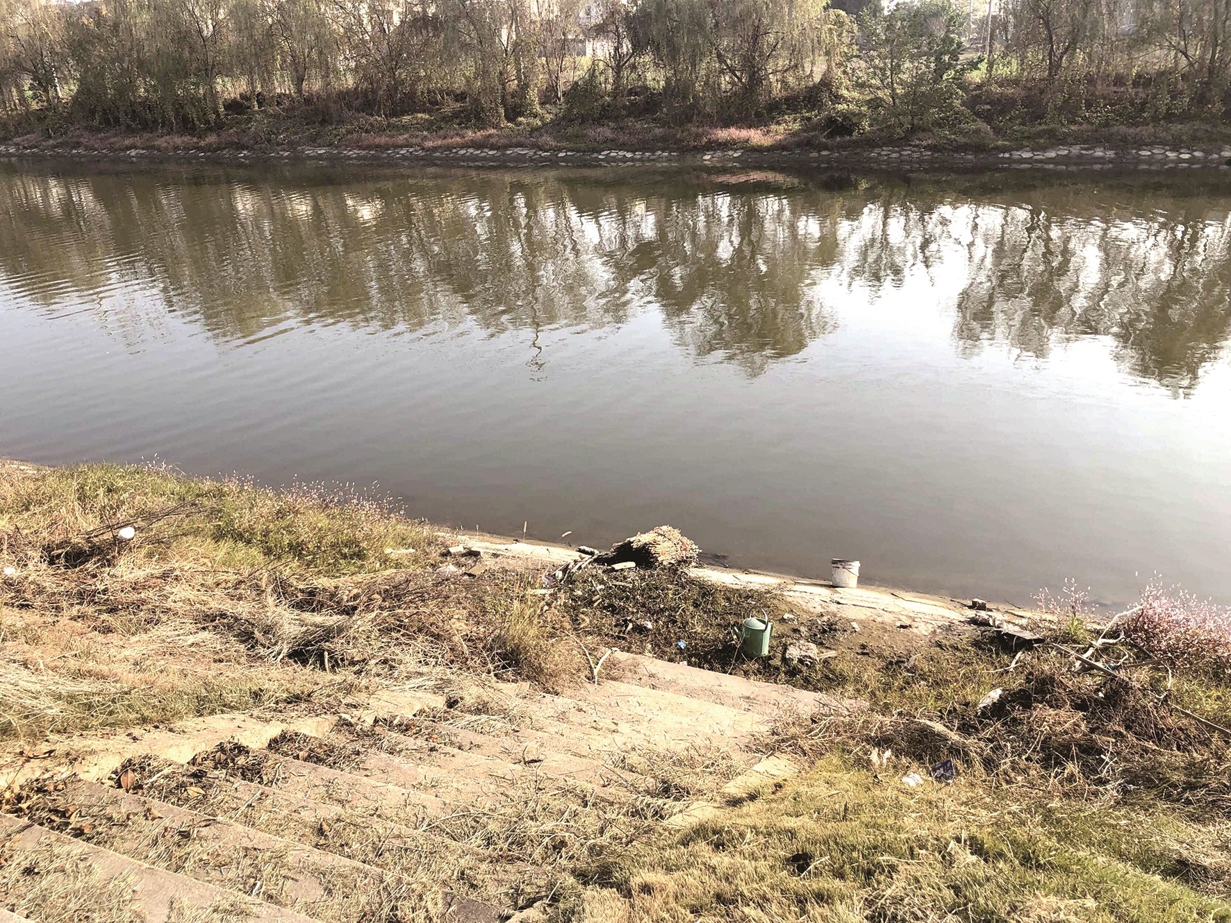 陈传枝和老伴跟随张国姣赶到落水点时,已经看不到落水者踪影。陈传枝赶紧让老伴报警求助,自己拿起岸边的竹篙打捞。当他朝落水点下游约20米处搜寻时,隐约看到有落水者的身影。此时,他手中的竹篙已经够不到落水者。“河堤的坡度比较陡,岸边还有青苔,稍不留神就会滑落水中。”陈传枝说。