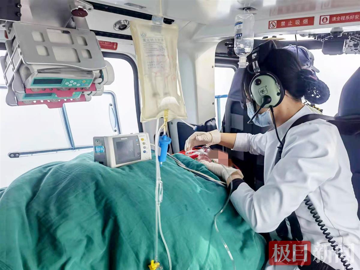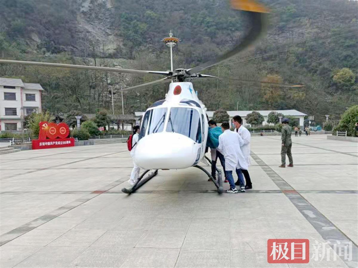经过充分准备后,十堰人医直升机于10时47分从该院健康广场起飞。11时20分,直升机安全降落在郧西县六郎乡,跟机医护人员紧急评估病情及对症处理后,迅速将患者转运至直升机上。11时31分,直升机再次起飞。11时56分,直升机顺利返回。从郧西六郎乡到十堰,原本至少3小时的地面车程,直升机仅用25分钟,就高效率、高质量的平安将患者救护回院。
