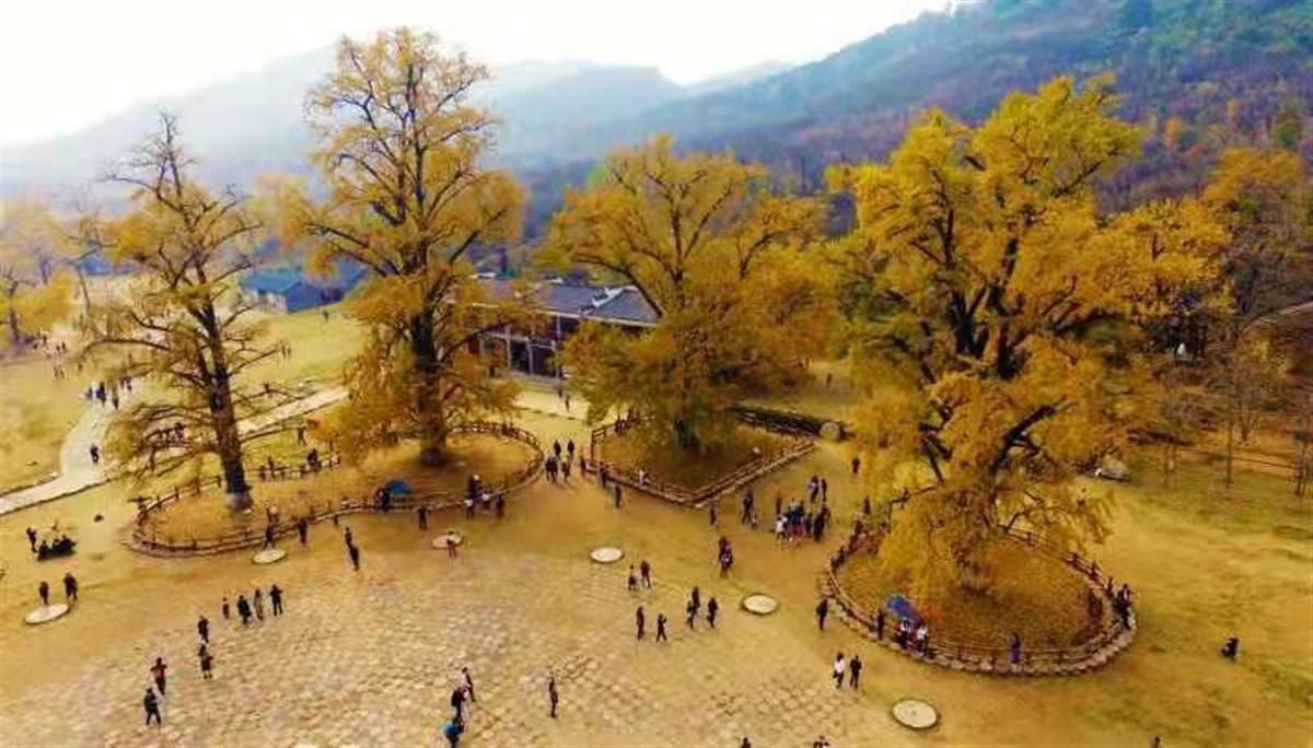 五棵银杏,年龄相仿,约1100岁,聚在一起做邻居,这是怎样的一种缘分。