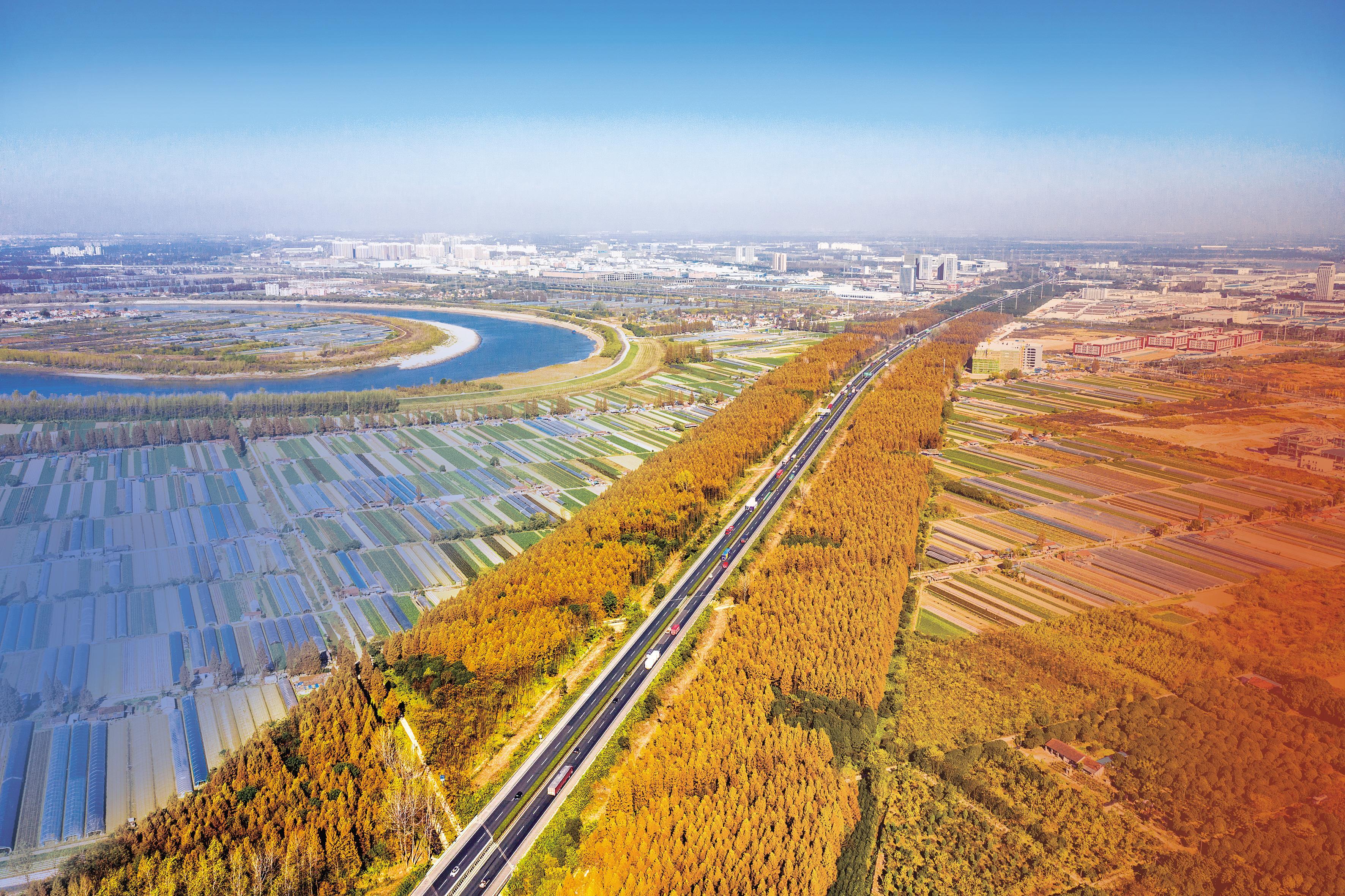 初冬时节,京港澳高速武汉东西湖慈惠段两旁的水杉林,迎来了最美观赏期。行驶在高速上,如同穿行在金色林海之中,车窗外更如一幅沃野千里、林茂水清的绝美画屏。
