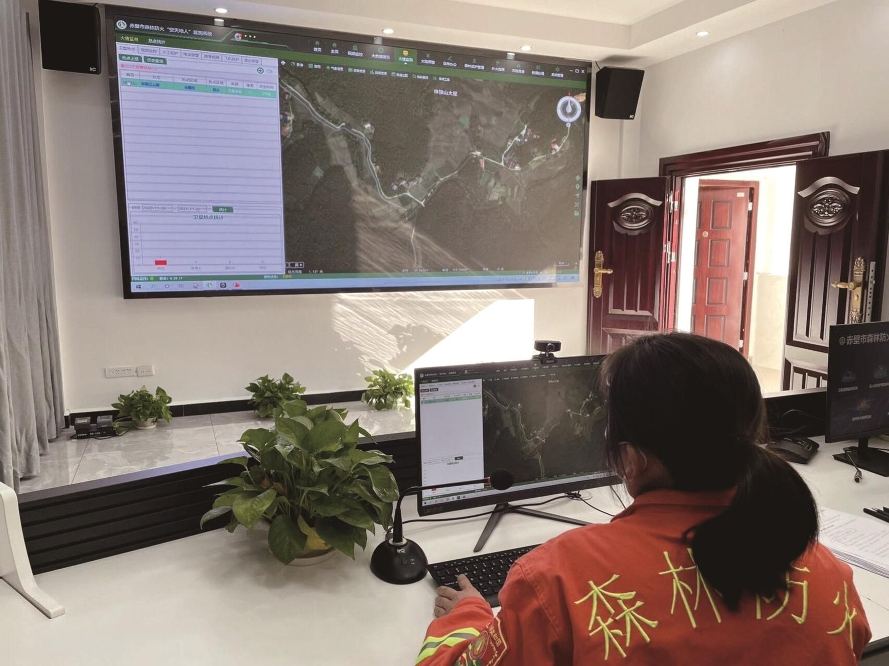 “卫星云图显示金紫山林场有异样,赶紧启动无人机核查。”赤壁市官塘驿林场金紫山分场森防指挥中心内,值班人员在森林防火“空天地人”监测系统中发出指令。