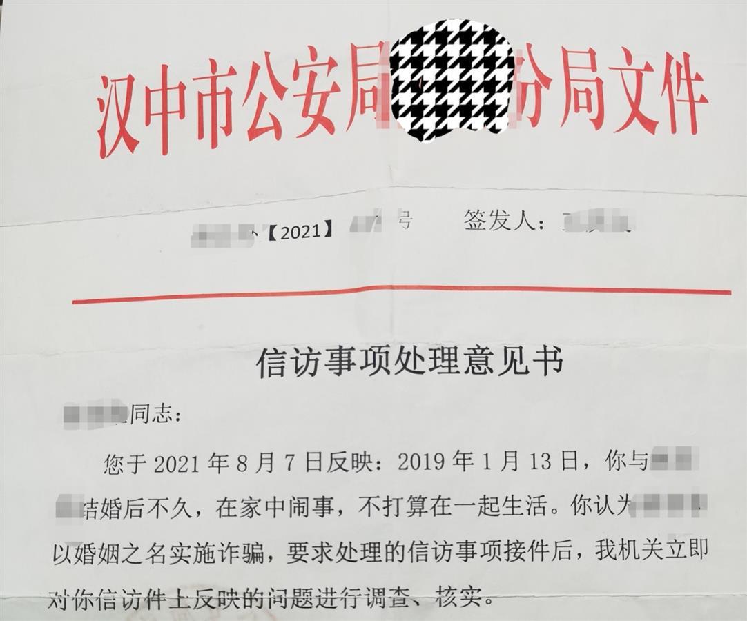 极目新闻记者拿到的一份2021年10月汉中当地公安的信访事项处理意见书显示,针对陈登高反映的刘程程诈骗问题,公安机关进行了调查。